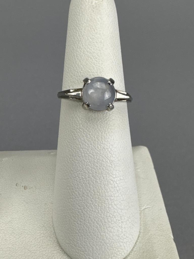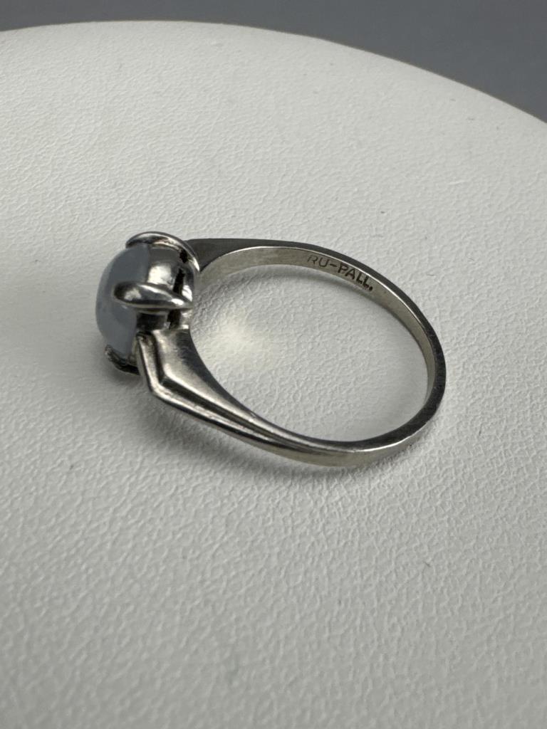 Moonstone/Asteriated Feldspar, shank is marked RU-PALL, size is 6 3/4, and weighs approx. 3.0 grams.