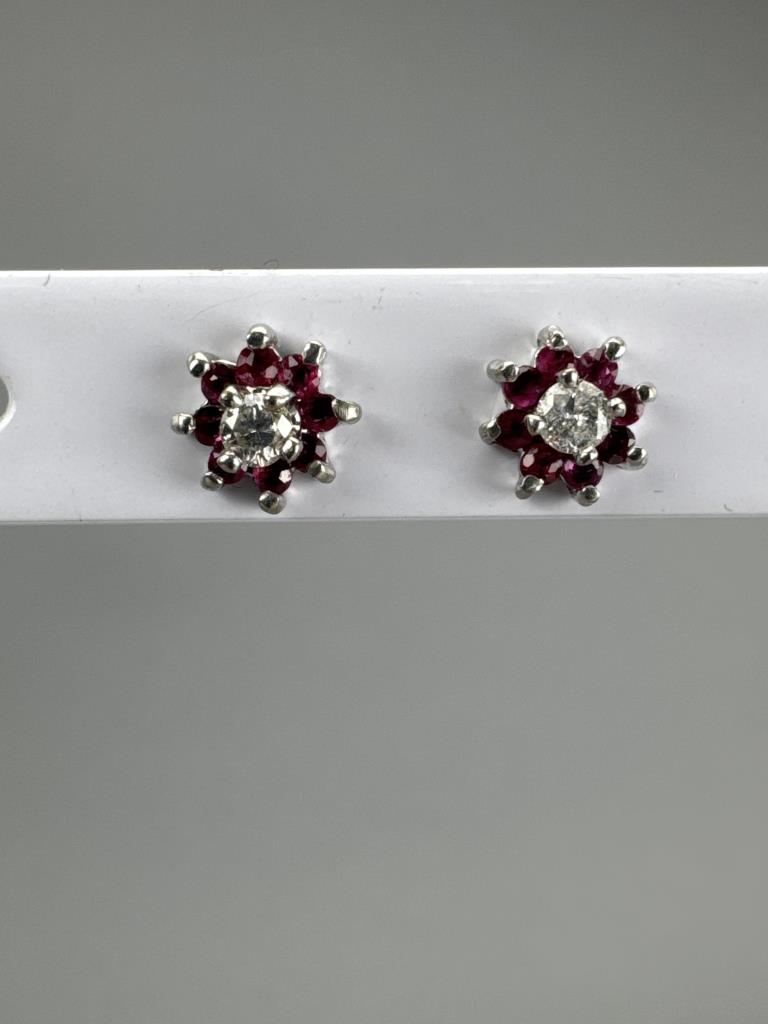 10K WG Diamond Ruby Flower Cluster Earrings
