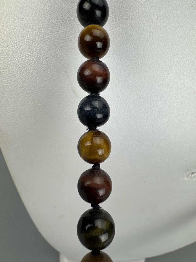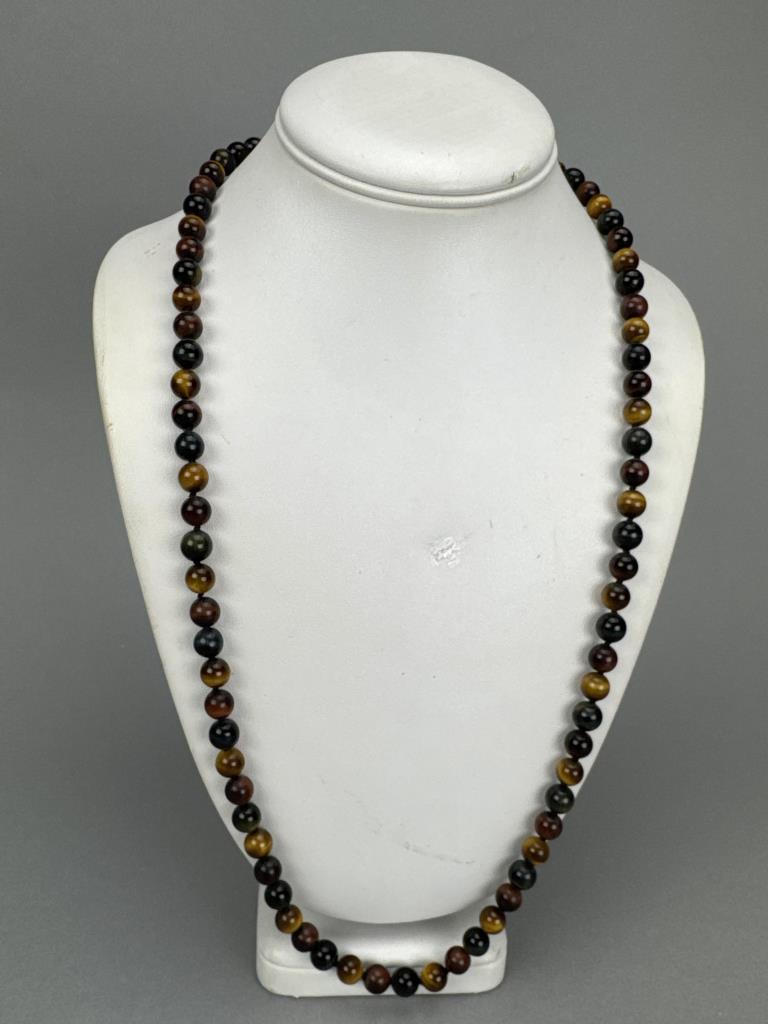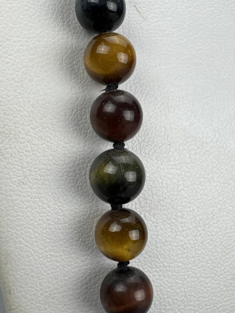 Knotted Tiger's, Bull's, Hawk's Eye Bead Necklace