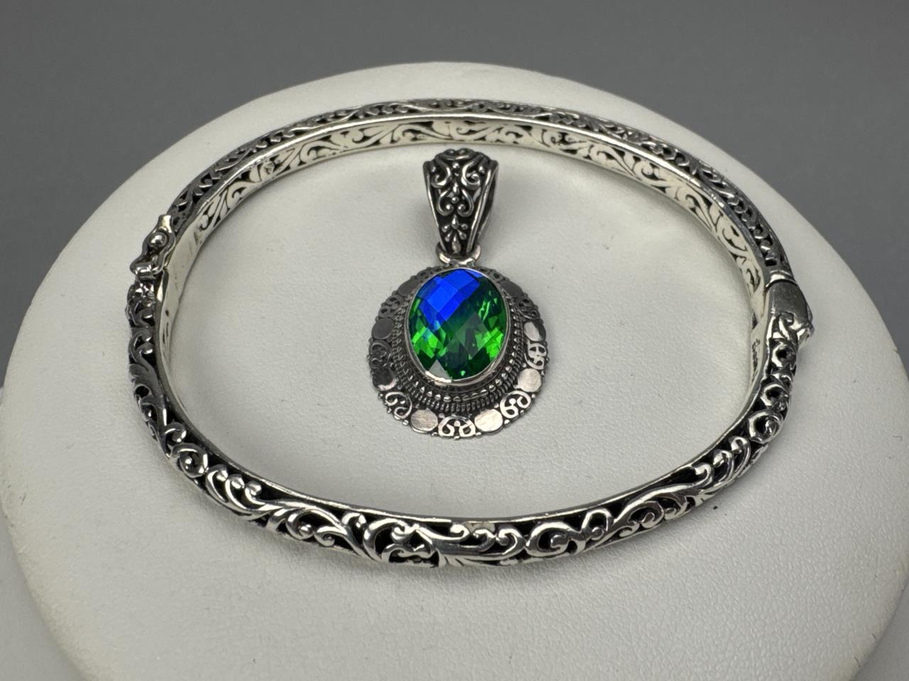 Sarda Filigree Bangle & Peacock Quartz Pendant