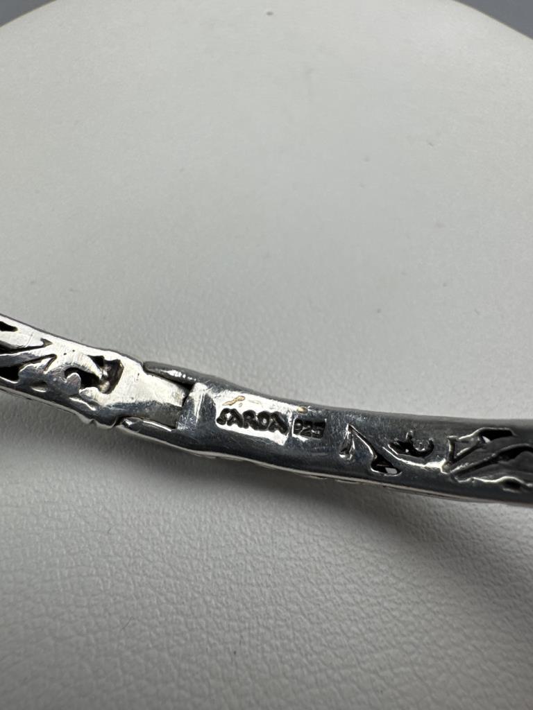 Both marked SARDA 925. 7 1/2 inch inside and weighs approx. 18.0 grams. 1 1/2 x 3/4 inch w/ bail and weighs approx. 4.8 grams.