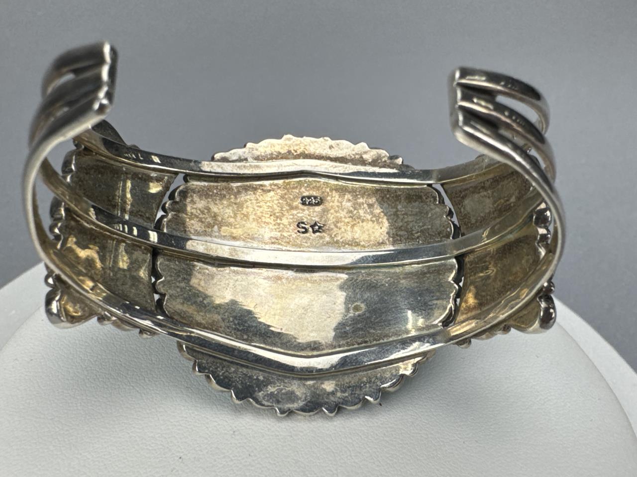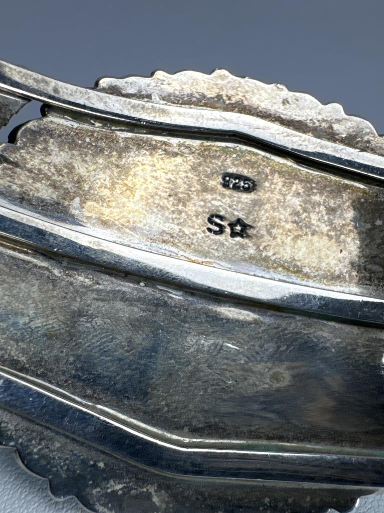 Marked 925 S star, 5 inch inside and weighs approx 41.4 grams.