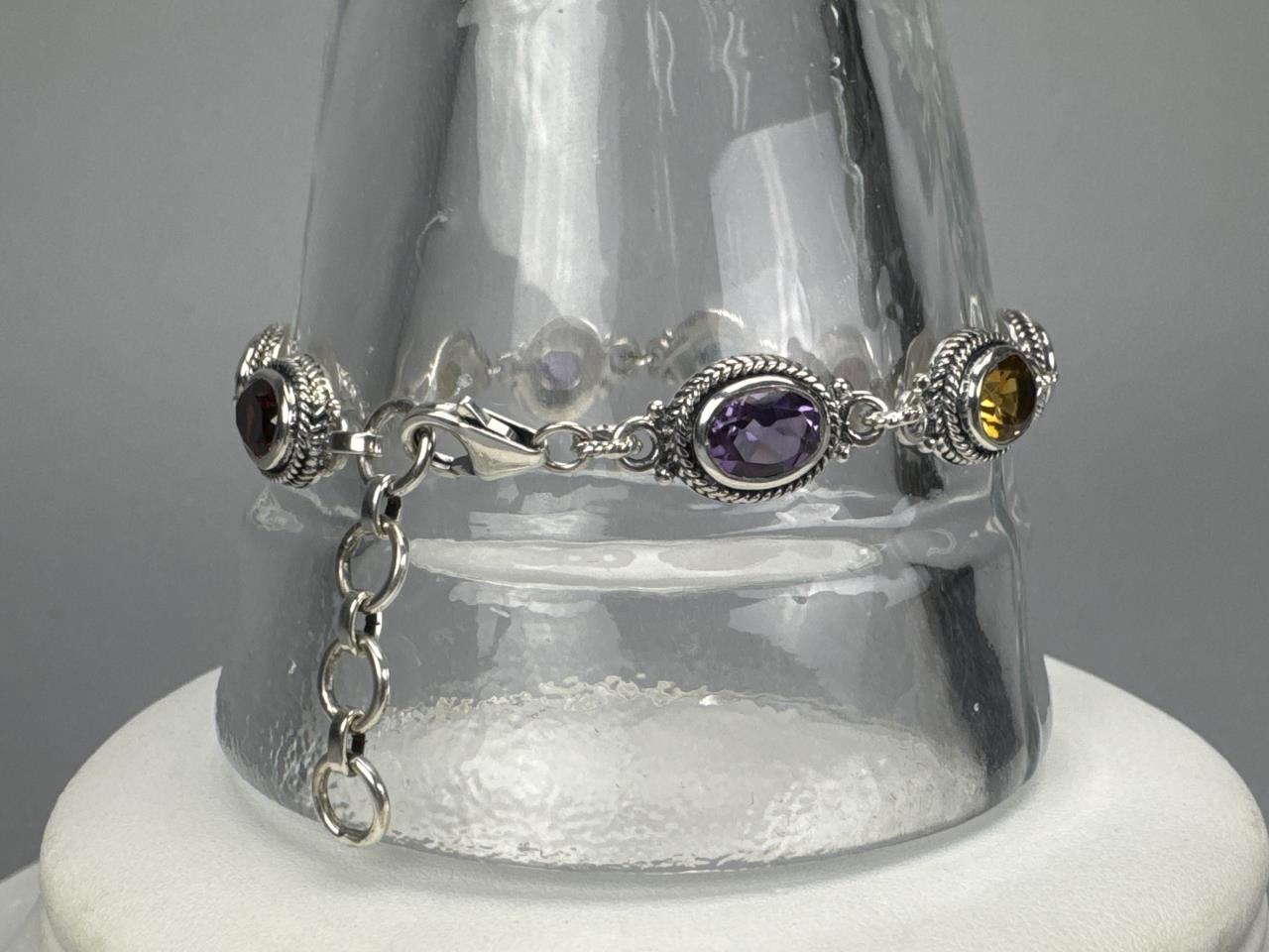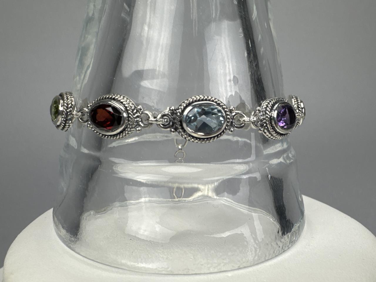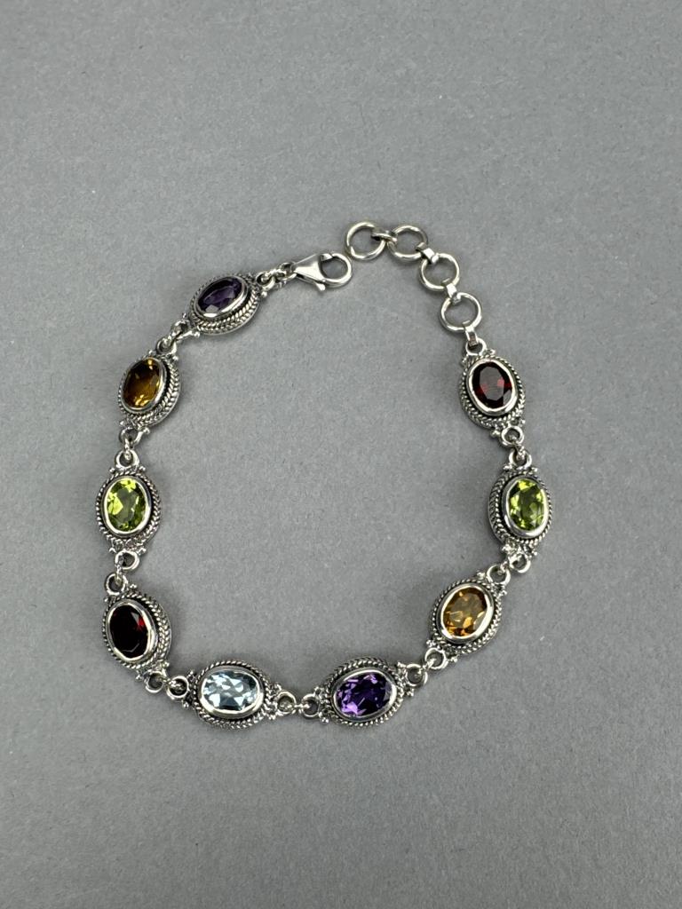 Sterling Silver Faceted Multi Gemstone Bracelet