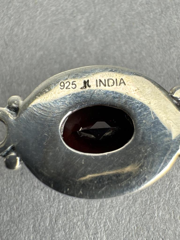Marked 925 INDIA, 7 1/4 + 1 inch, and weighs approx. 19.6 grams.