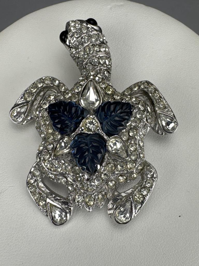 Weinberg New York Figural Turtle Blue Stone Brooch