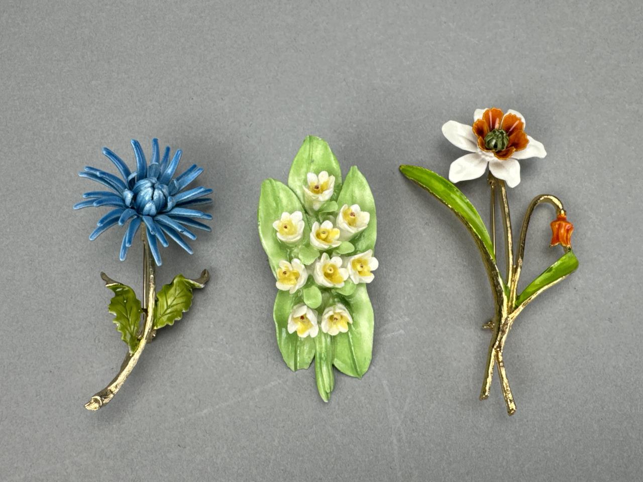2 Weiss Floral Brooches & 1 Adderly Floral Brooch