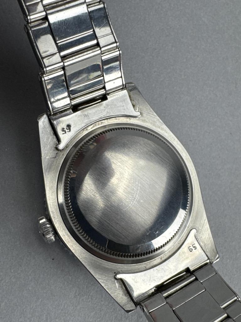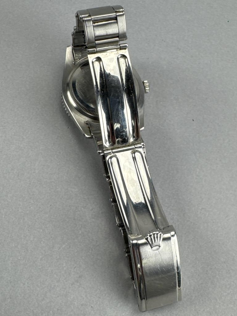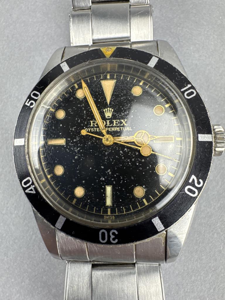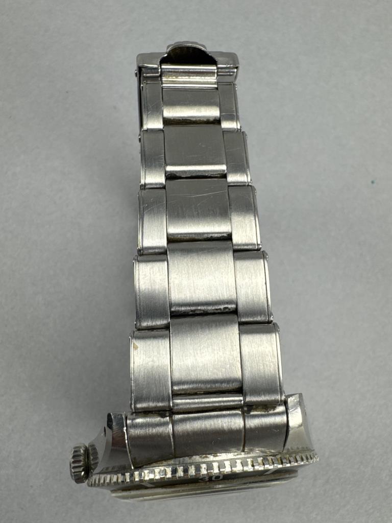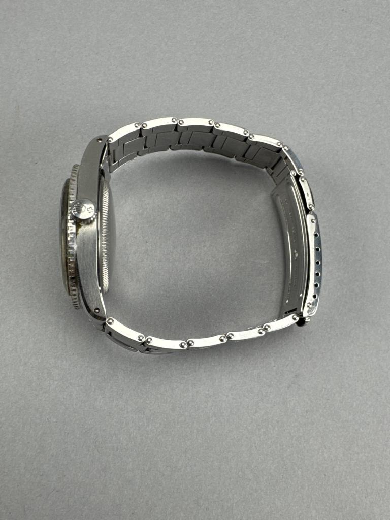 Of particular importance, the present example is fitted with a FIXED stainless steel bezel, an exceptionally rare and historically important feature that underscores the experimental phase of the Submariner’s development prior to the widespread adoption of rotating timing bezels. Such fixed-bezel examples are seldom encountered and represent some of the earliest expressions of Rolex’s professional dive watch concept.