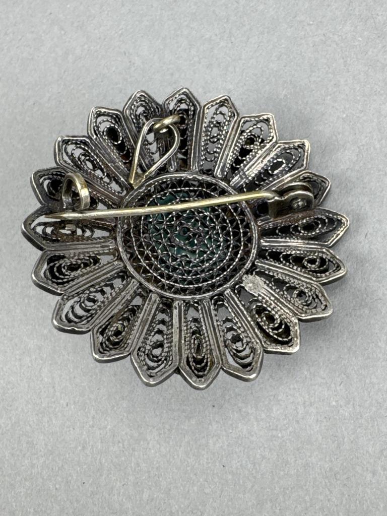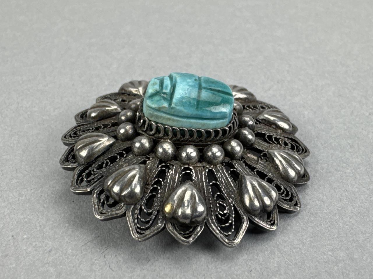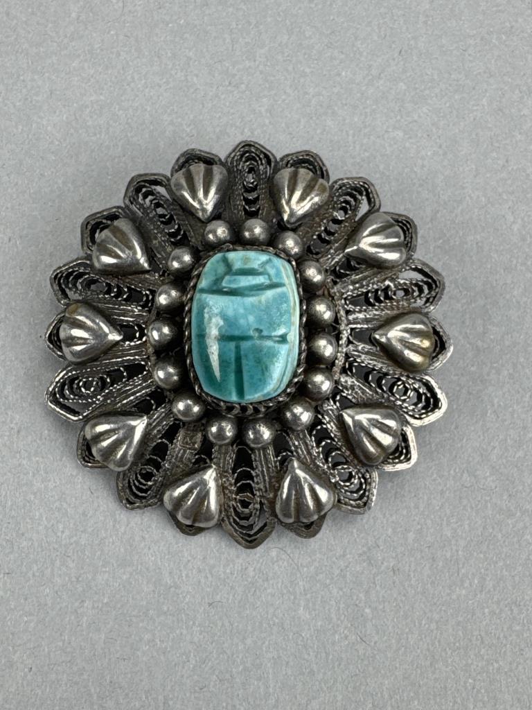 Silver Filigree Faience Scarab Brooch/Pendant