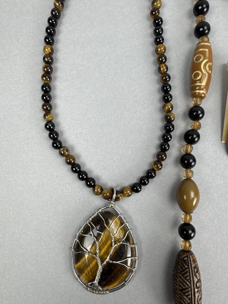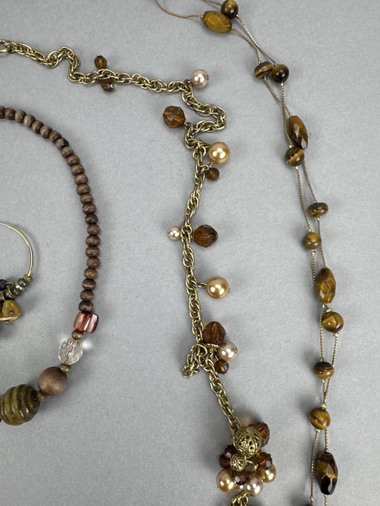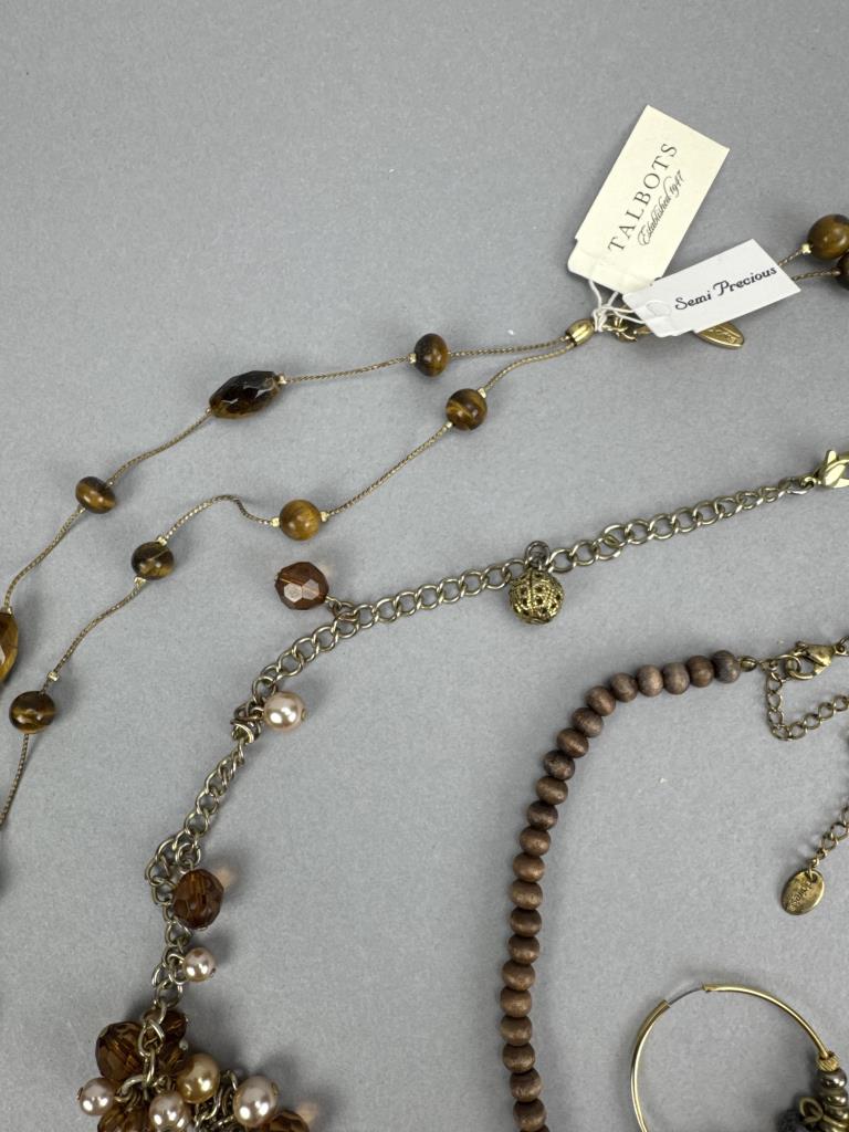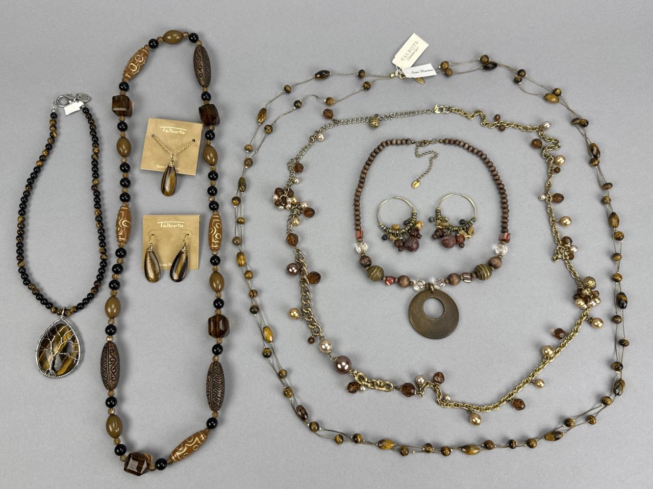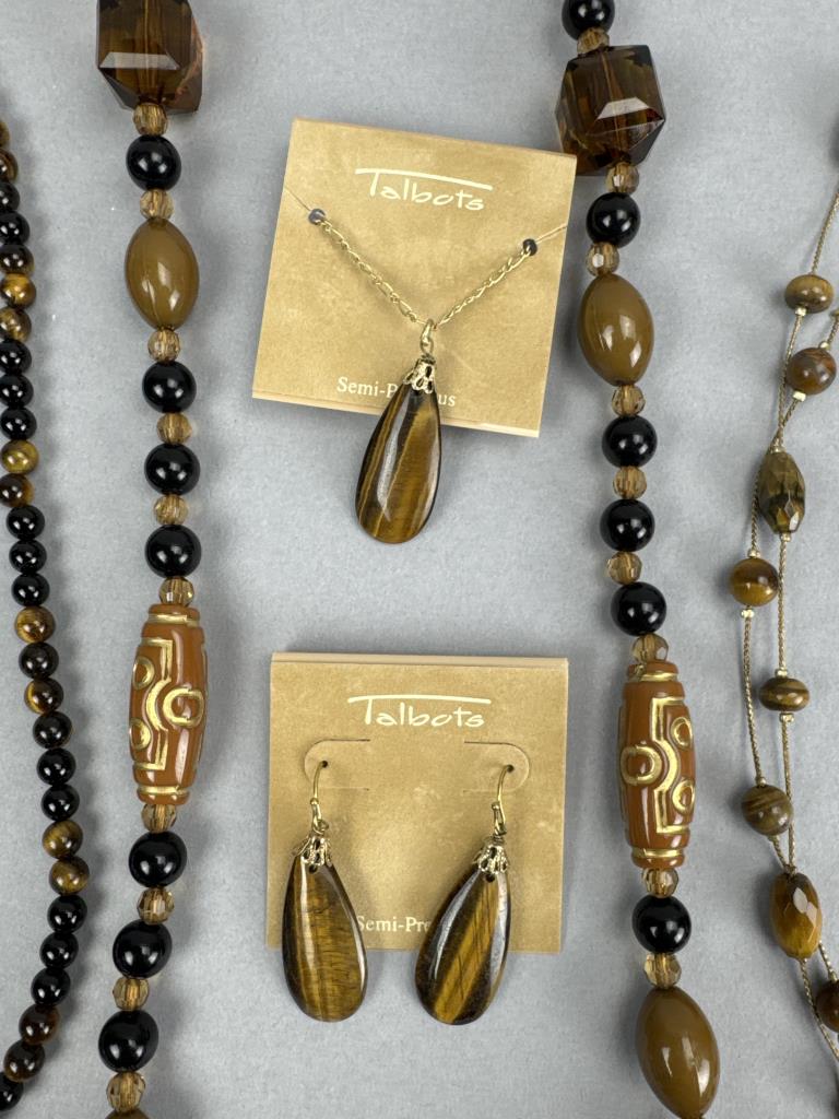 18 inch Talbots tiger eye necklace with matching earrings. 18 inch tiger eye tree of life necklace, 24 inch Talbots double strand tiger eye bead necklace, and more.