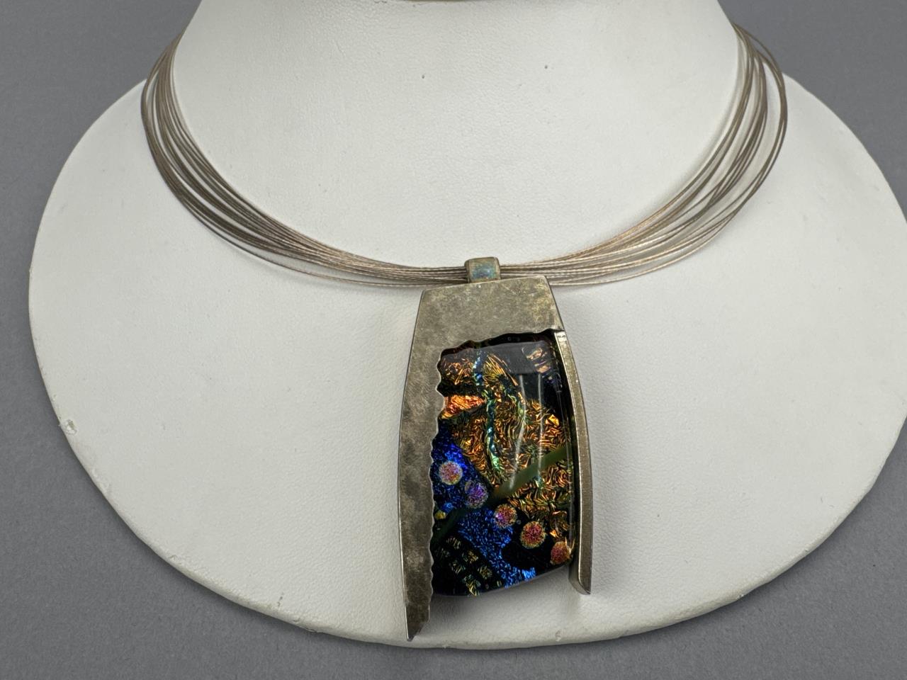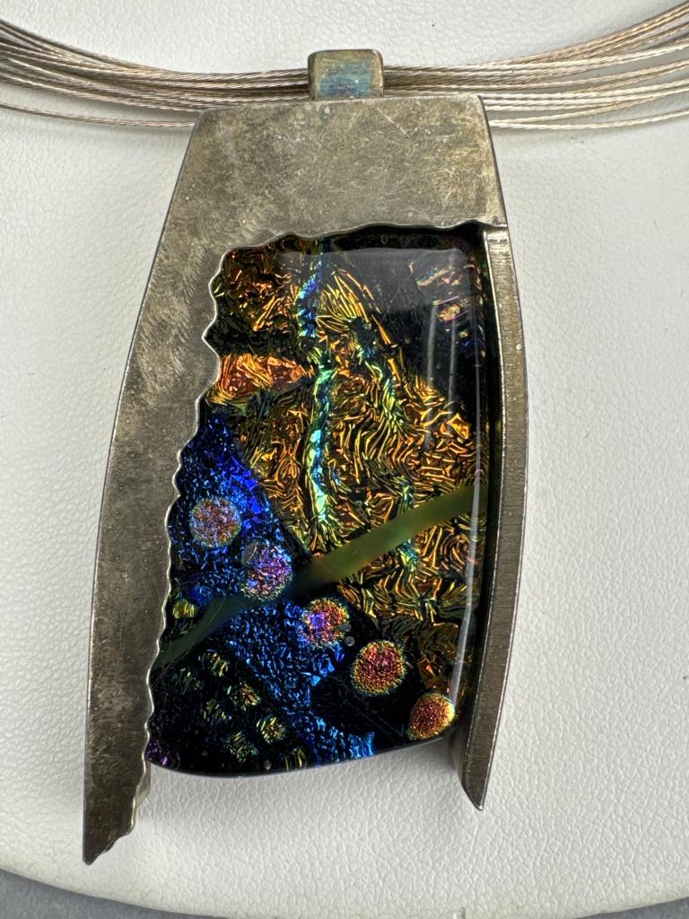 Sterling Silver Dichroic Charm on Wire Collar