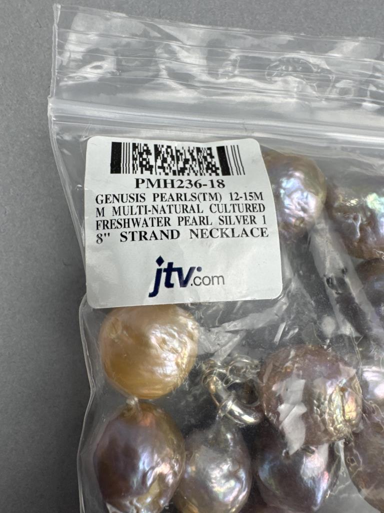 Jtv PMH236-18 – 18 inch multi-natural cultured Genusis pearls (TM). Weighs approx. 122.4 grams.