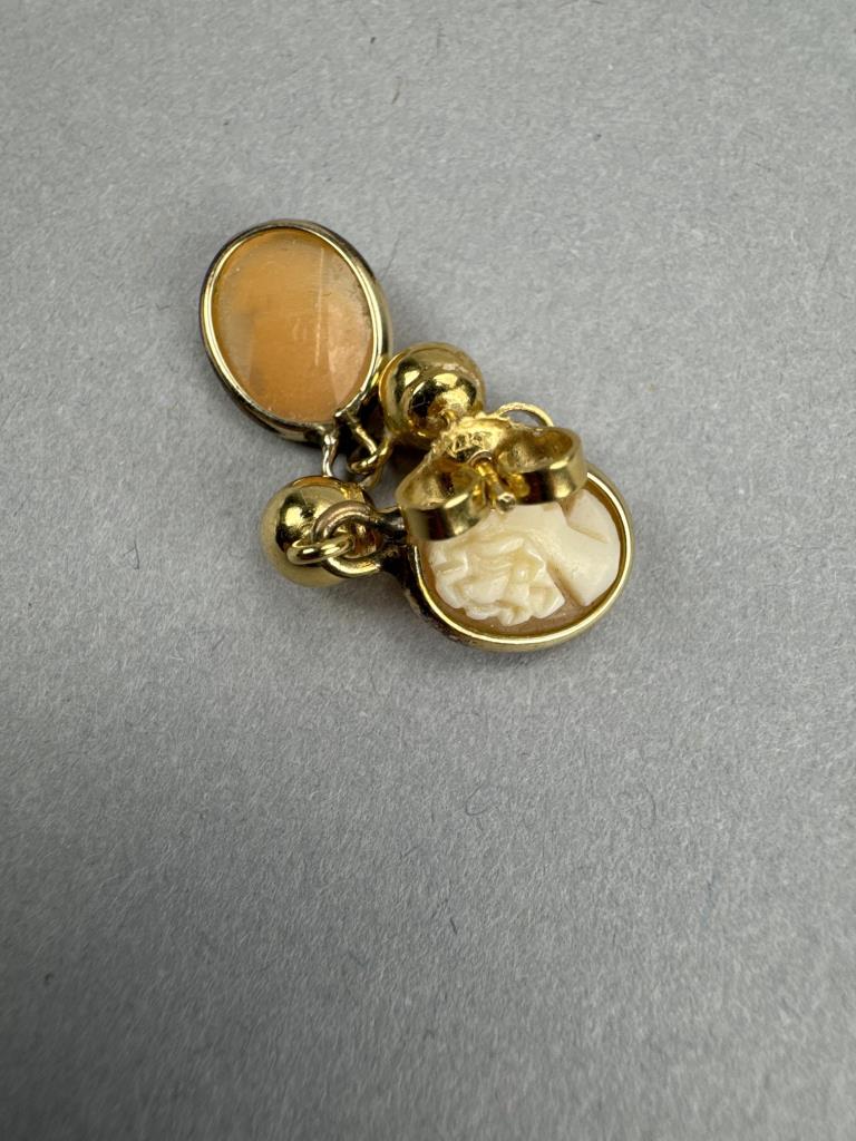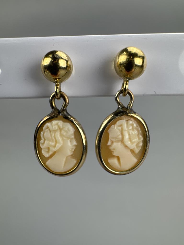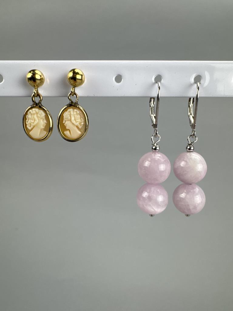 Silver Round Kunzite Drop and 14K Cameo Earrings