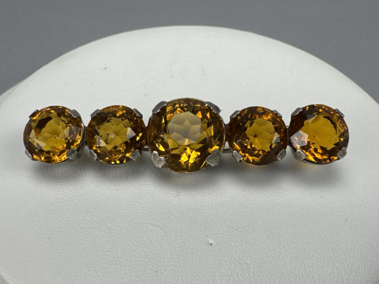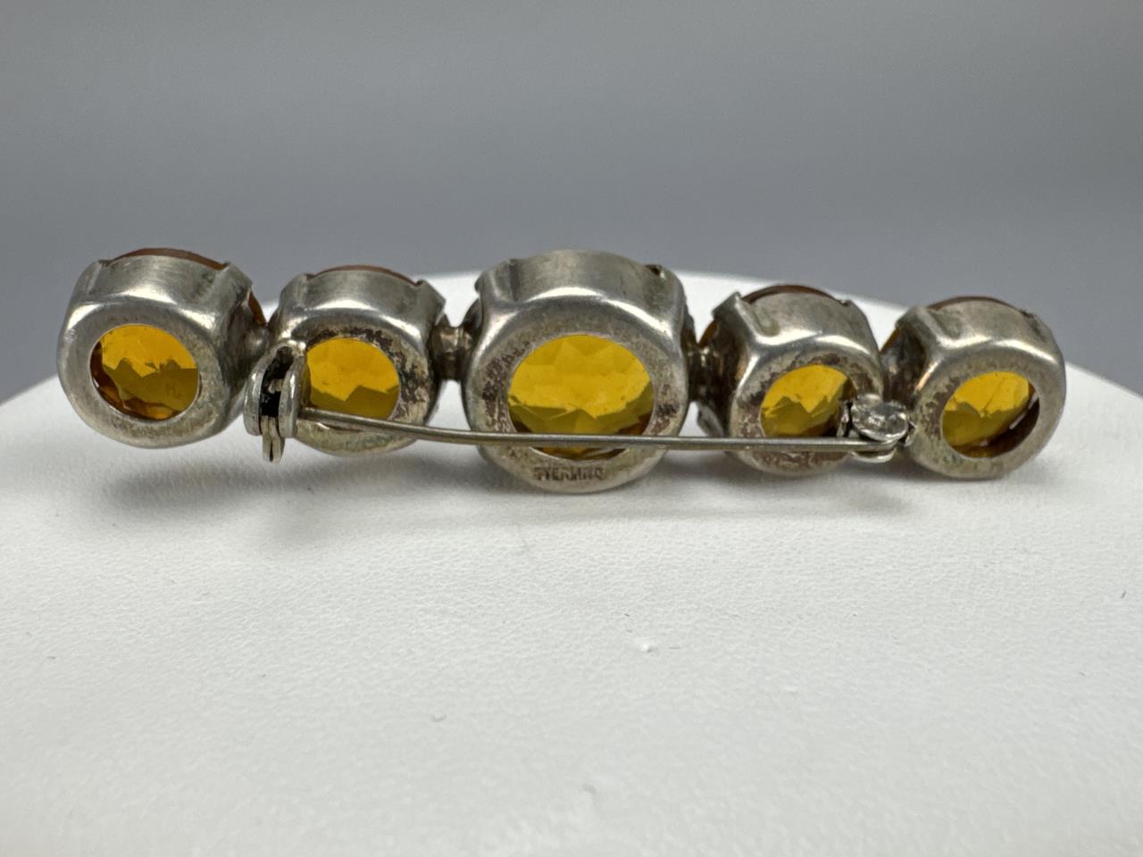 Sterling Silver Faceted Yellow Stones Bar Brooch