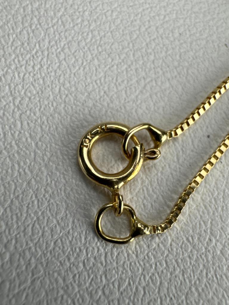 Marked 10K XL on clasp, weighs approx. 0.9 grams.