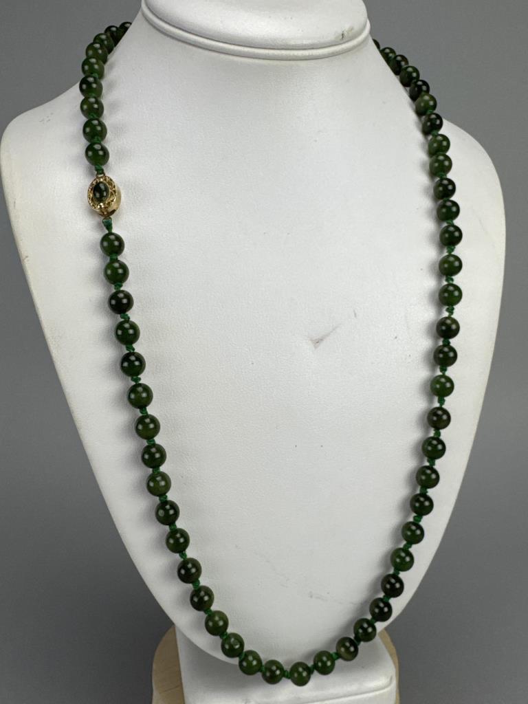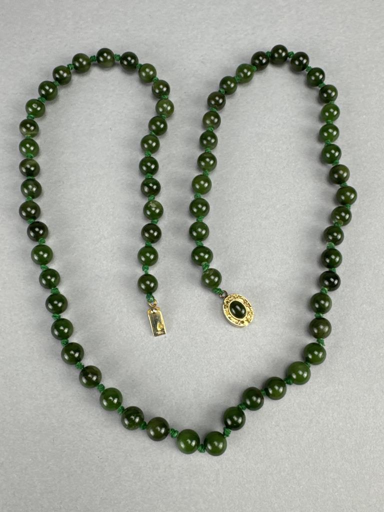 Hand Knotted Nephrite Jade 8mm Bead Necklace