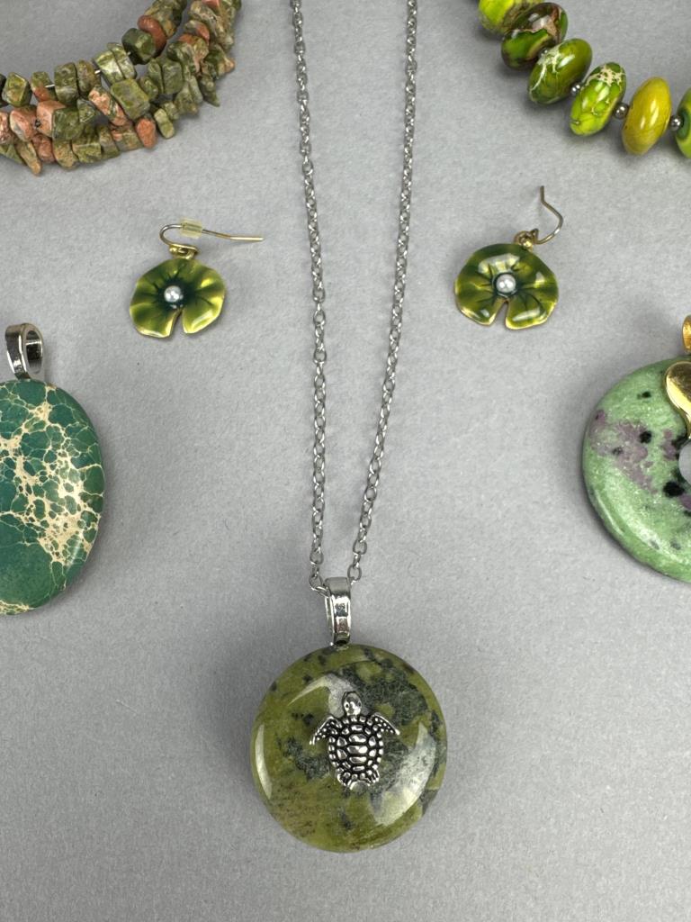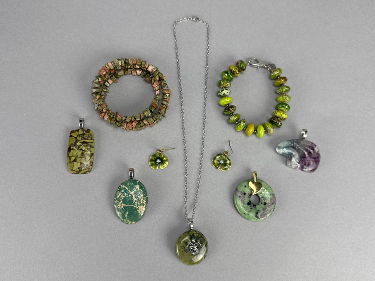 Modern Stone Carved Pendants, Bracelet, Earrings
