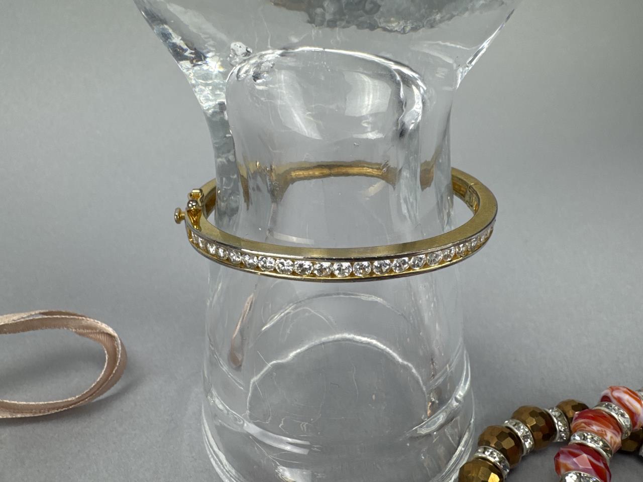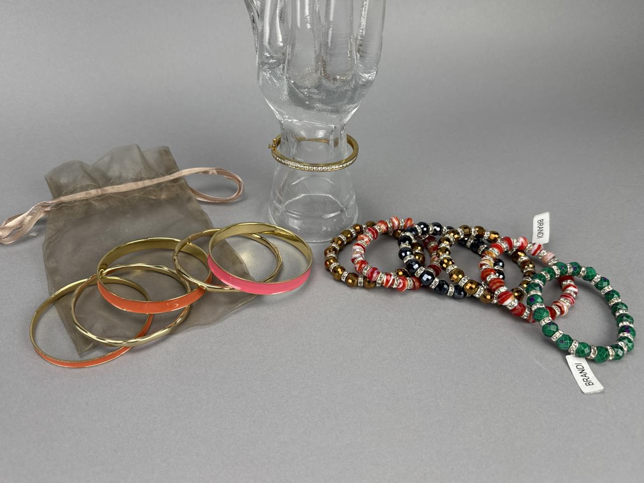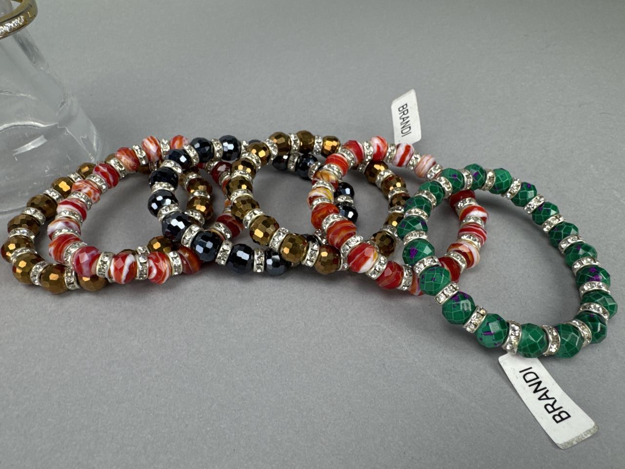 6 Brandi faceted bead stretch bracelets, rhinestone hinge bracelet, bangle bracelets