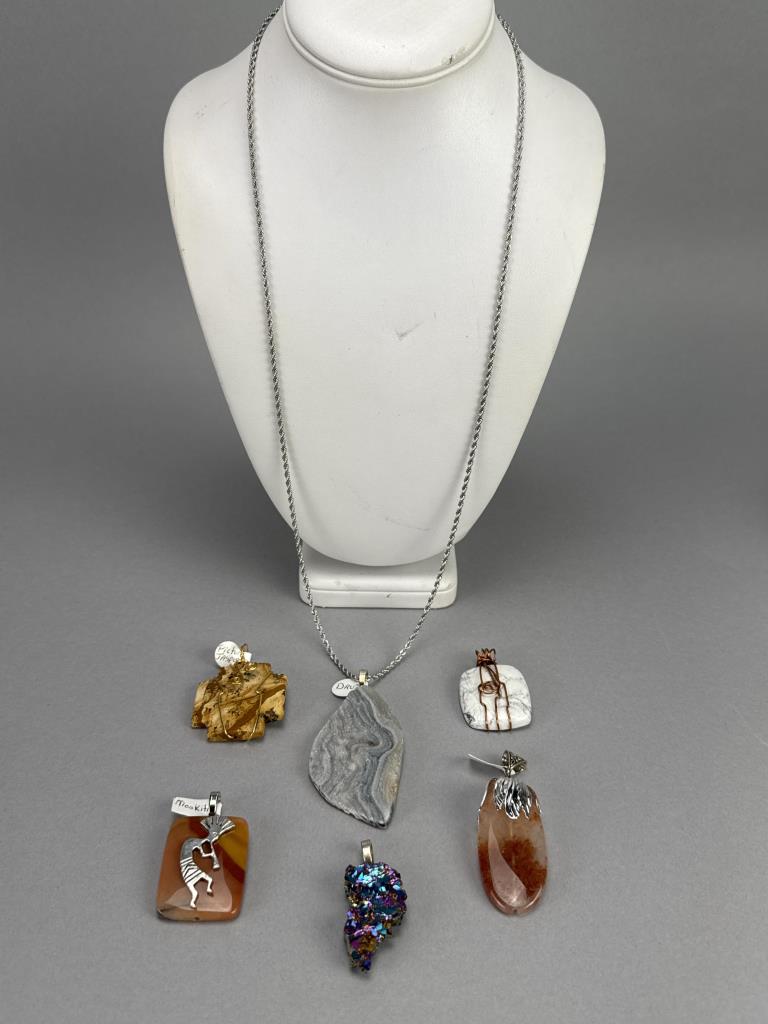Stainless Steel Rope Necklace 6 Large Stone Charms