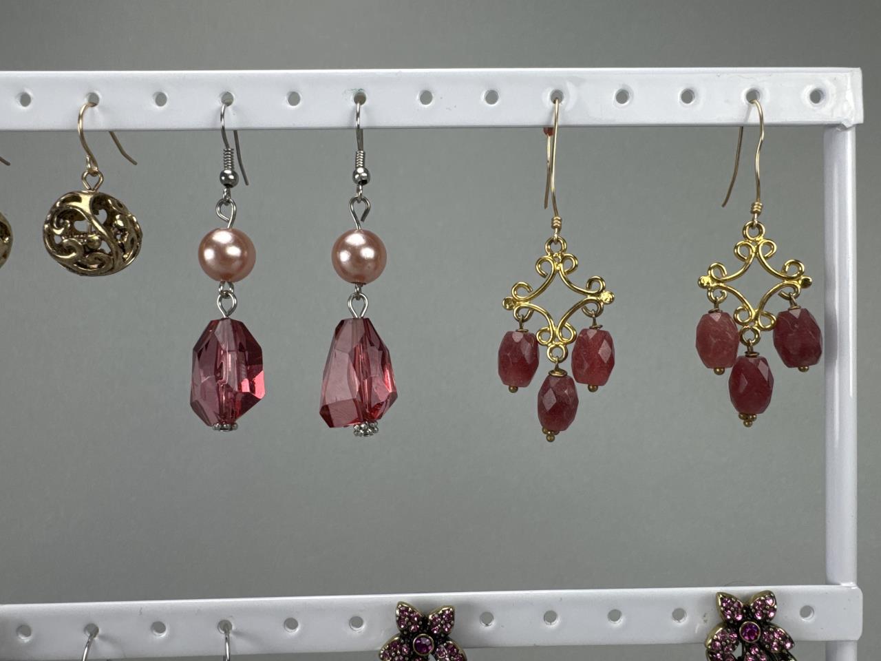 Tassels, crystals, faux pearls, pink stones, red stones, beads