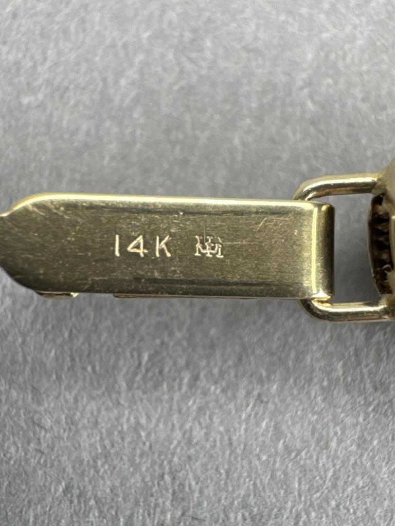 24 inch, yellow gold clasp marked 14K next to a trident like hallmark, by Imperial Pearl Syndicate (founded in 1917) on reverse, 39.6 grams. Circa 1970s-1990s.