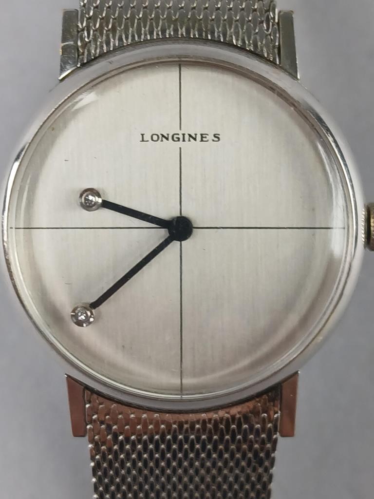 Longines 10K white gold filled men’s watch with diamond accent. Not tested.