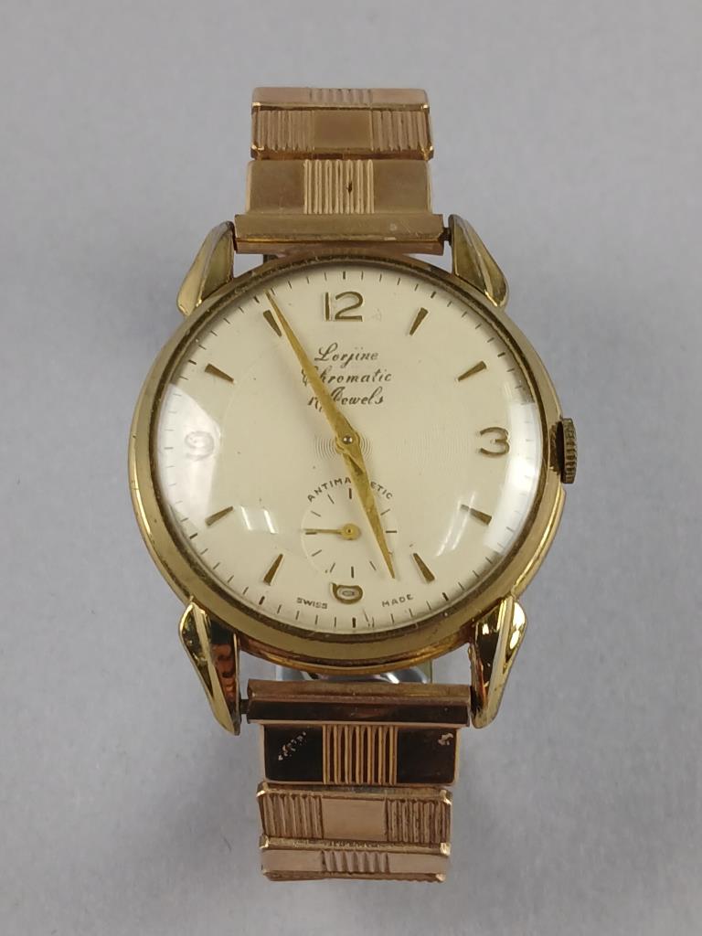 Swiss made Lorjines10K gold filled top chromatic watch with 17 jewels. Not tested.
