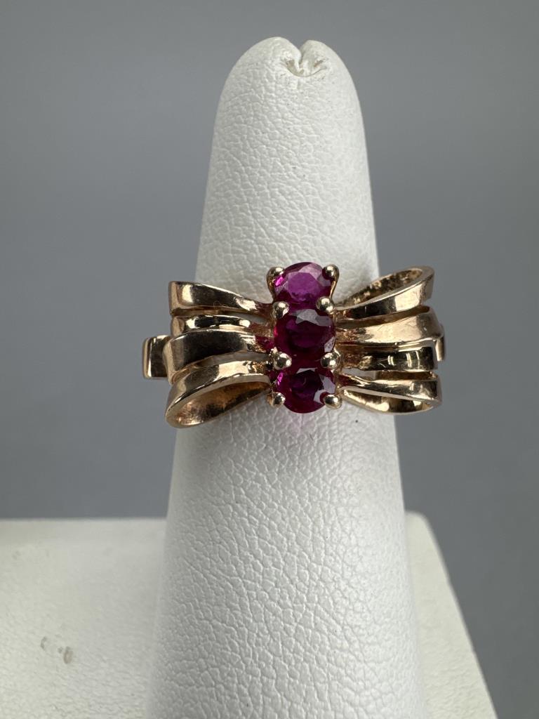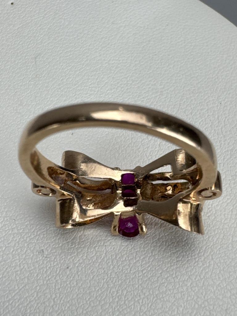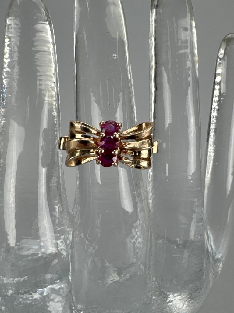 14K Rose Gold 3 Ruby Ribbon Bow Ring