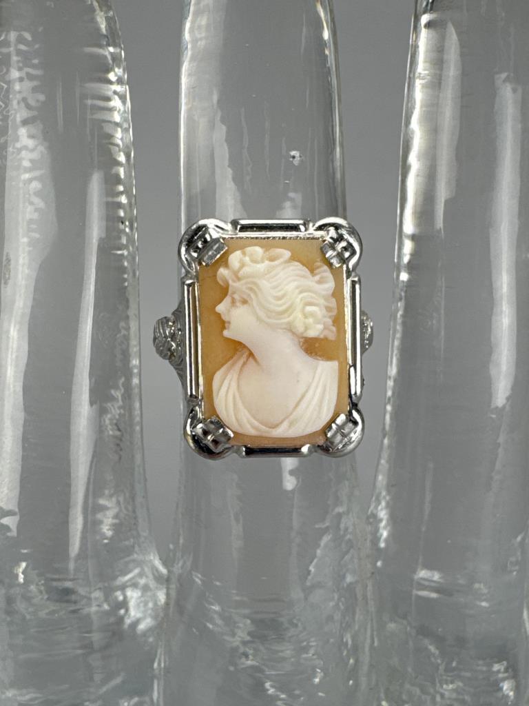 10K White Gold Cameo Ring
