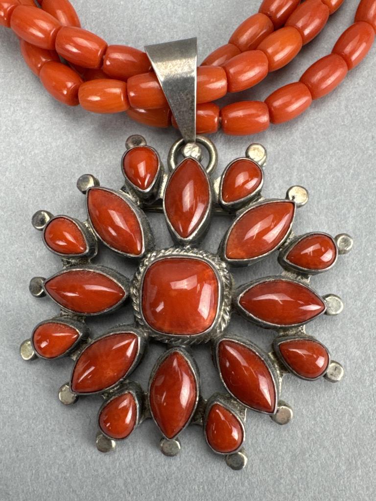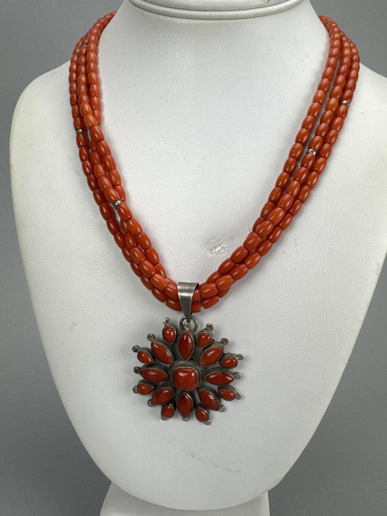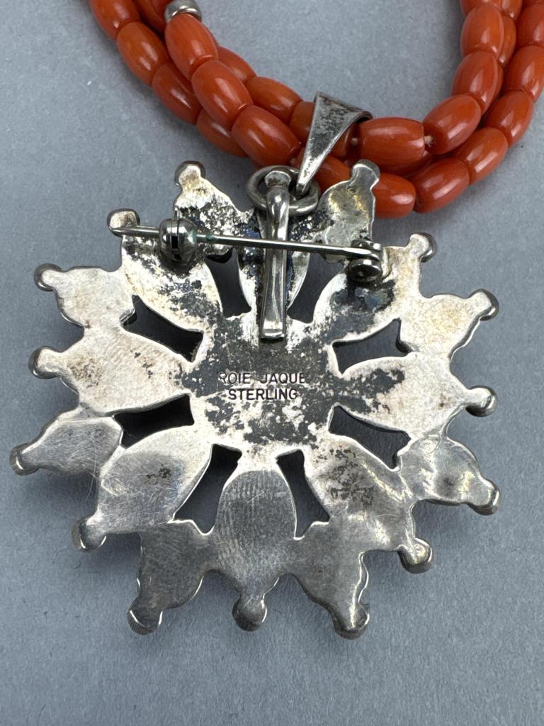Sterling Coral Strand Necklace Roie Jaque Pendant