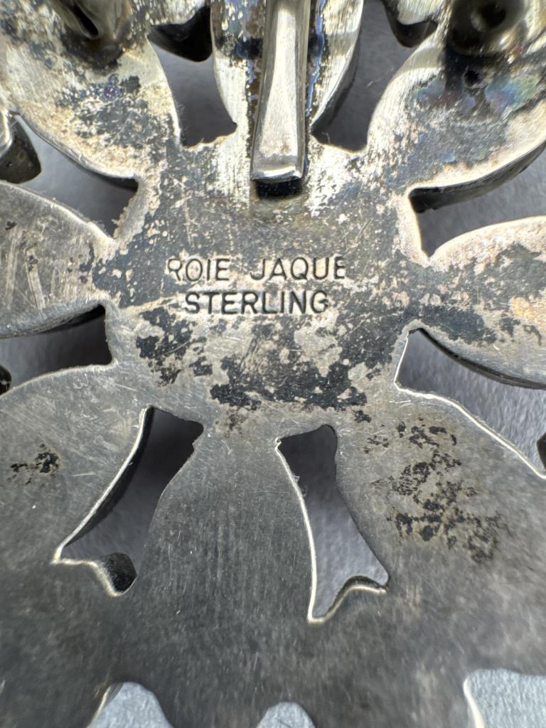 18 inch 3 strand coral bead necklace with Roie Jaque signed coral pendant brooch combo. The pendant weighs 17.8 grams and the necklace weighs 53.0 grams.