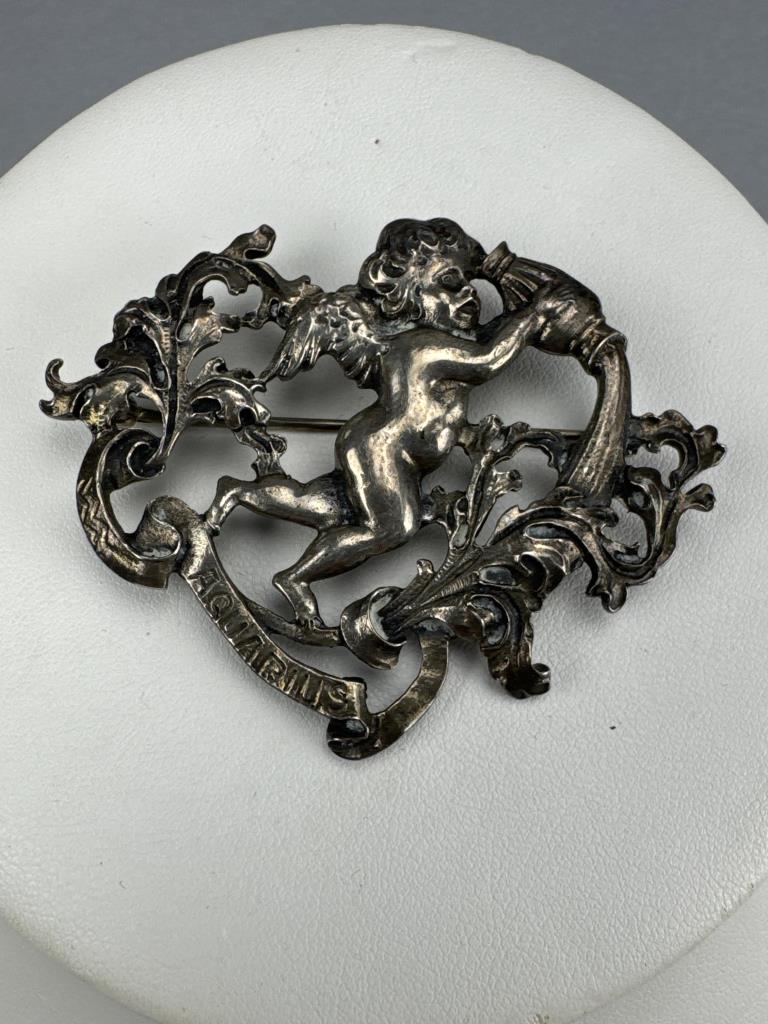 Sterling Silver Signed Cini Aquarius Zodiac Brooch