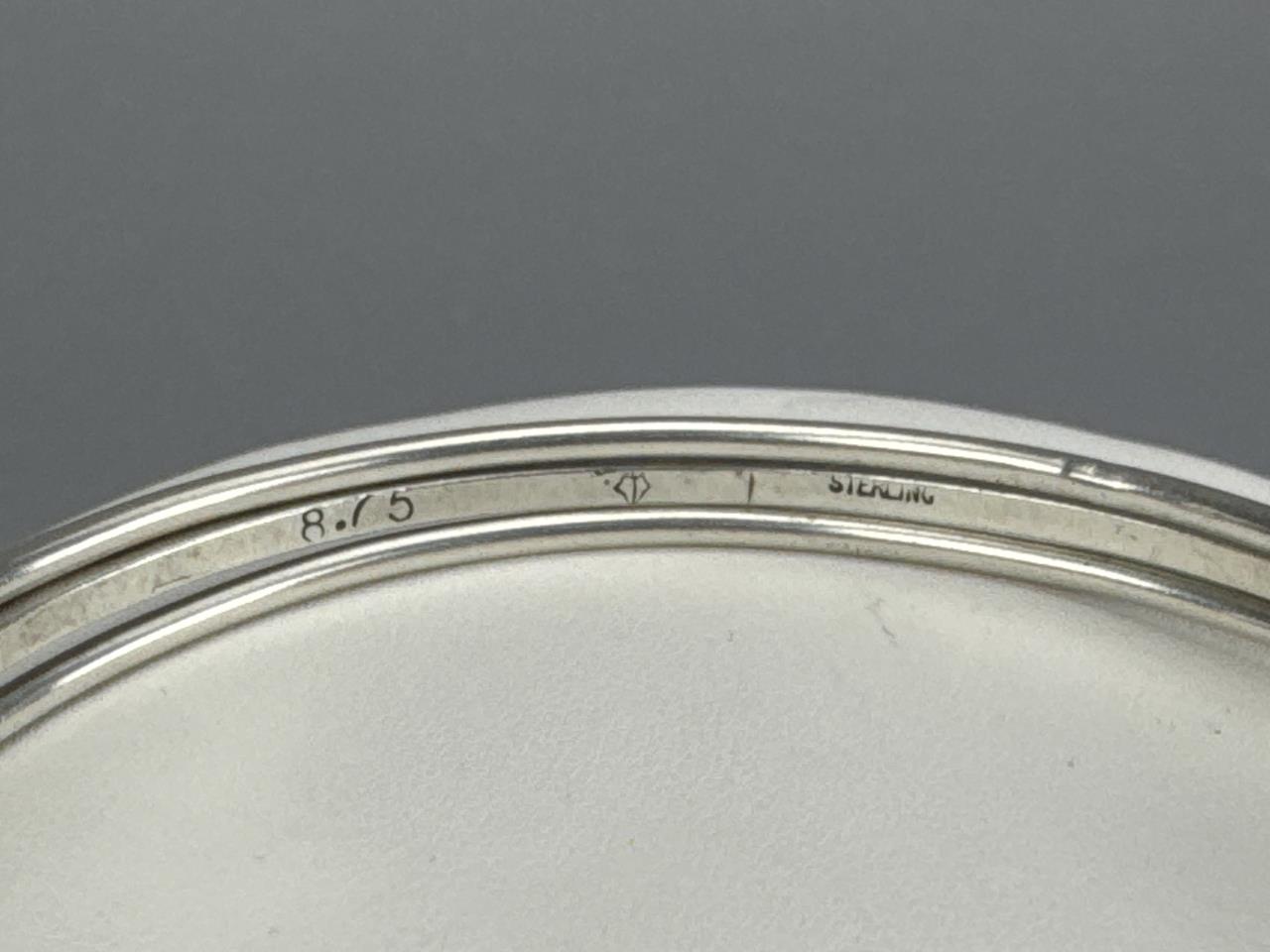 Possibly Cohen & Wilkerson shield maker mark is stamped on bangle. Marked STERLING 8.75. Weighs approx. 27.0 grams.