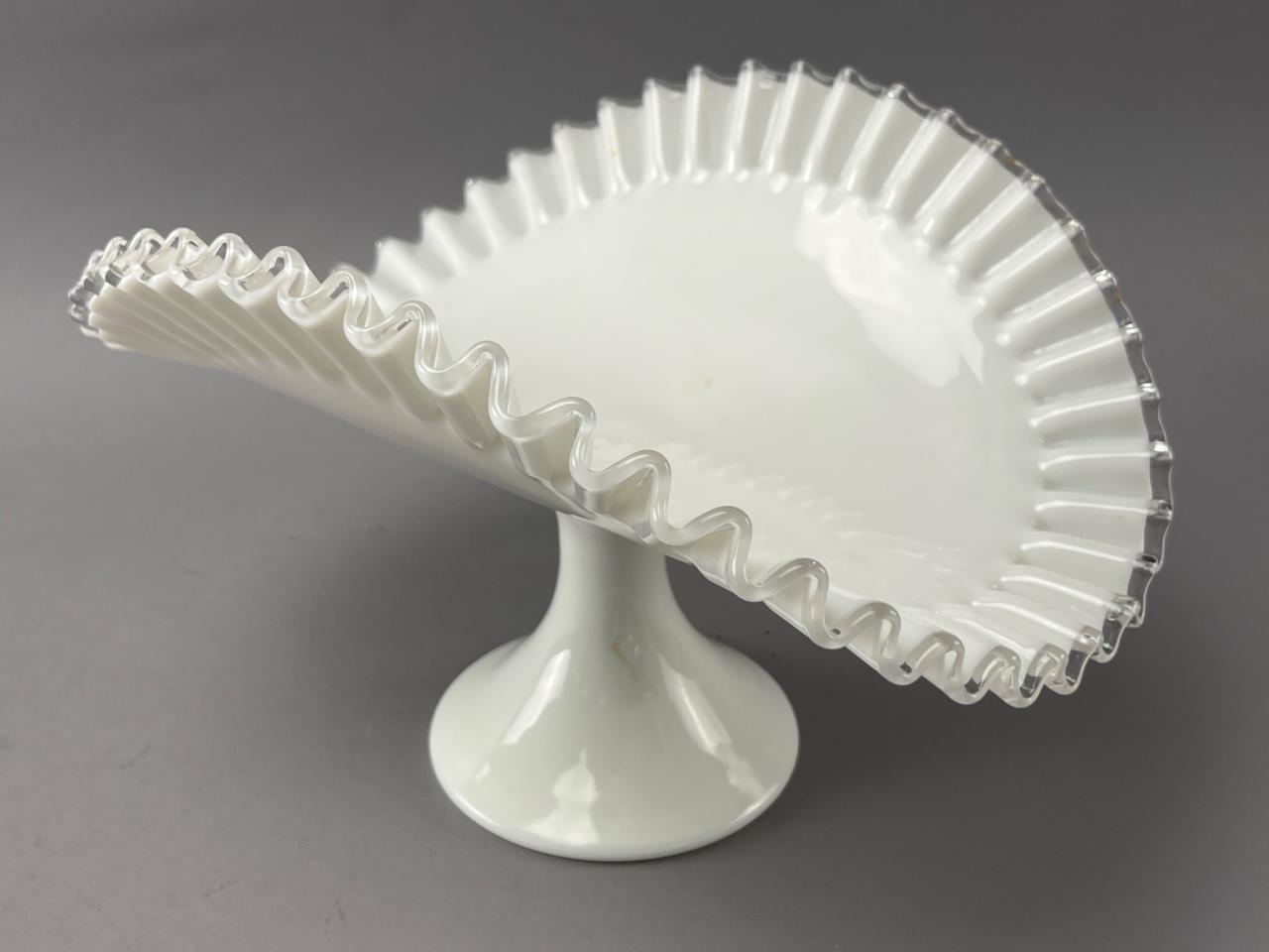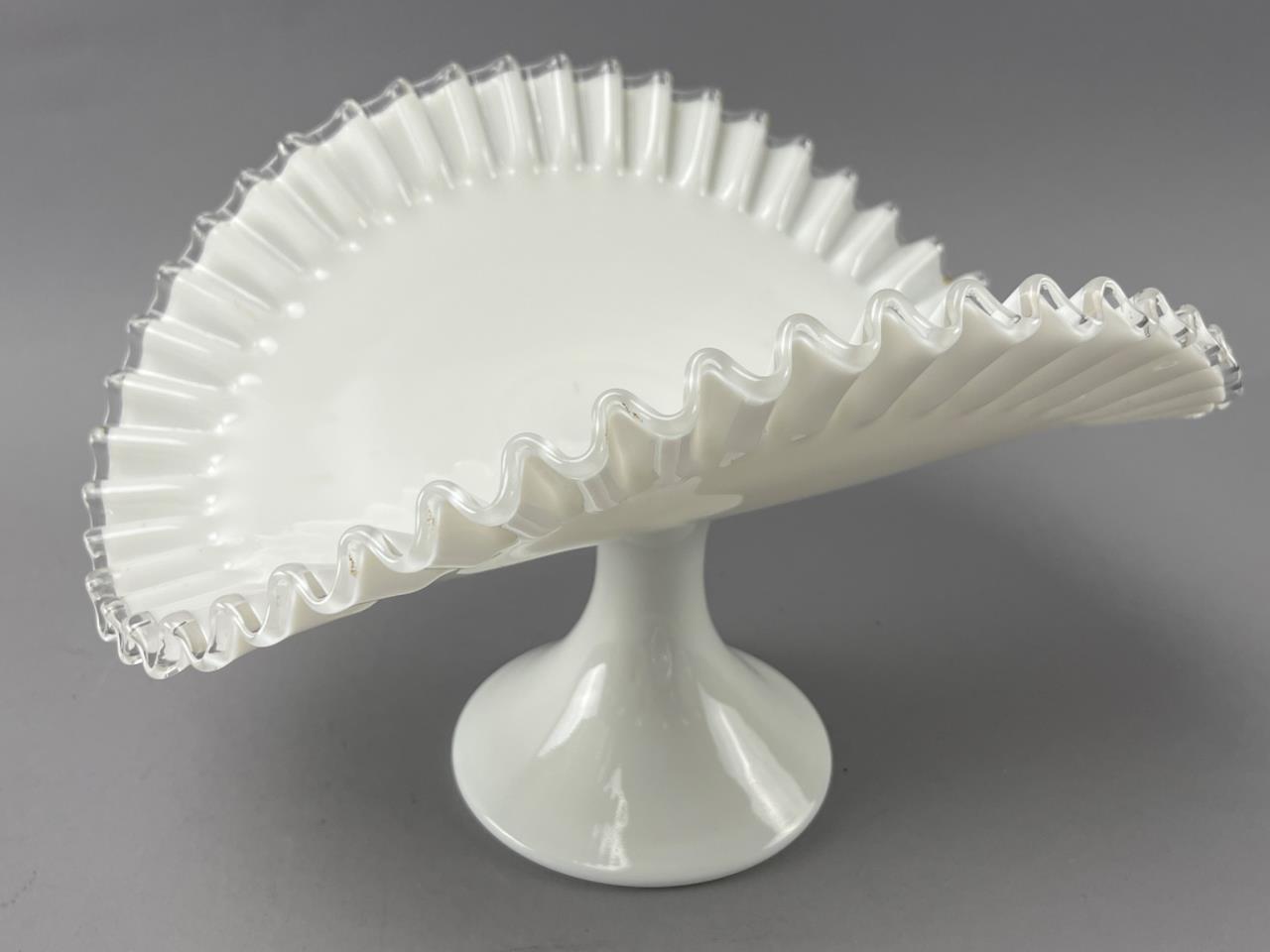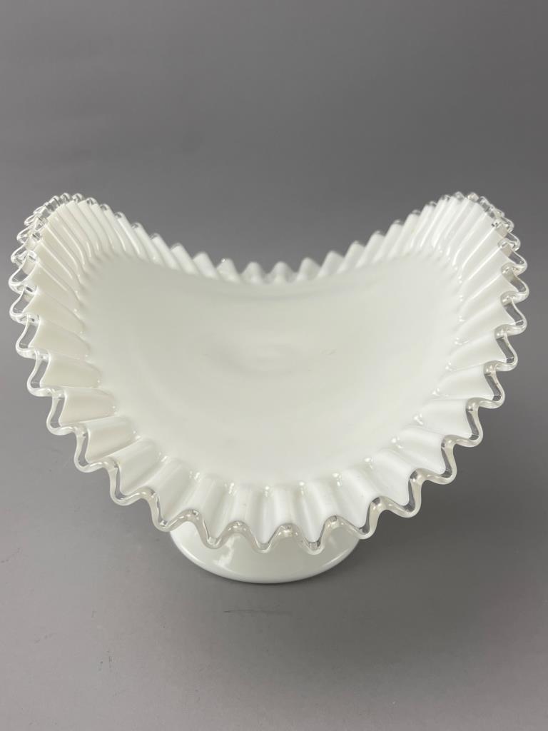 White Glass Compote with Ruffled Edge