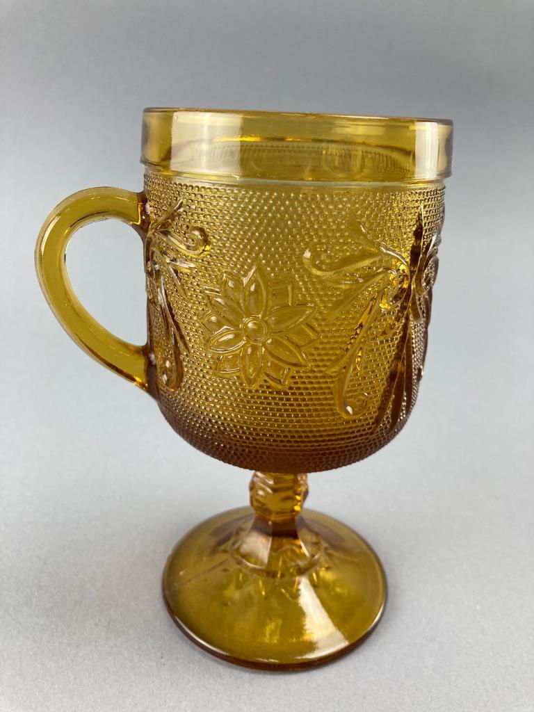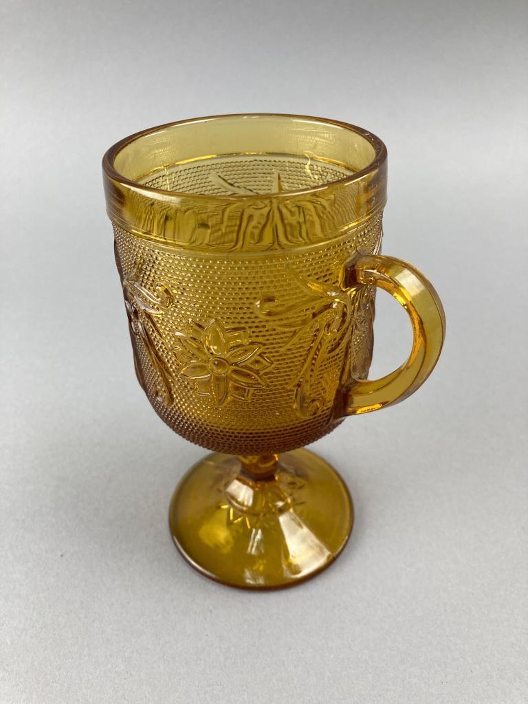 Amber Glass Goblets with Floral Relief