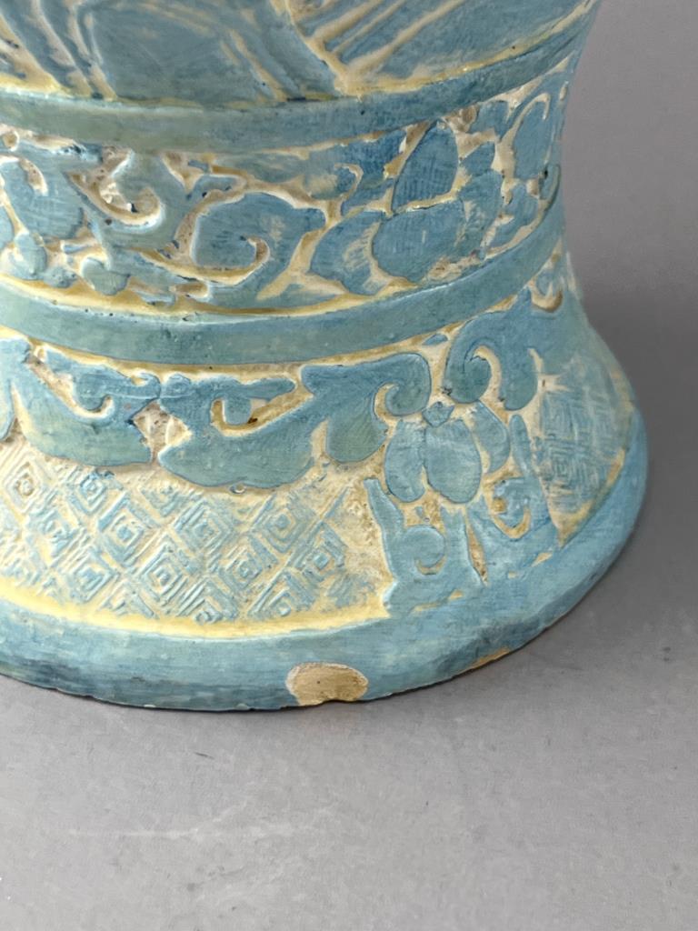 Incised Blue and White Glazed Ceramic Vase