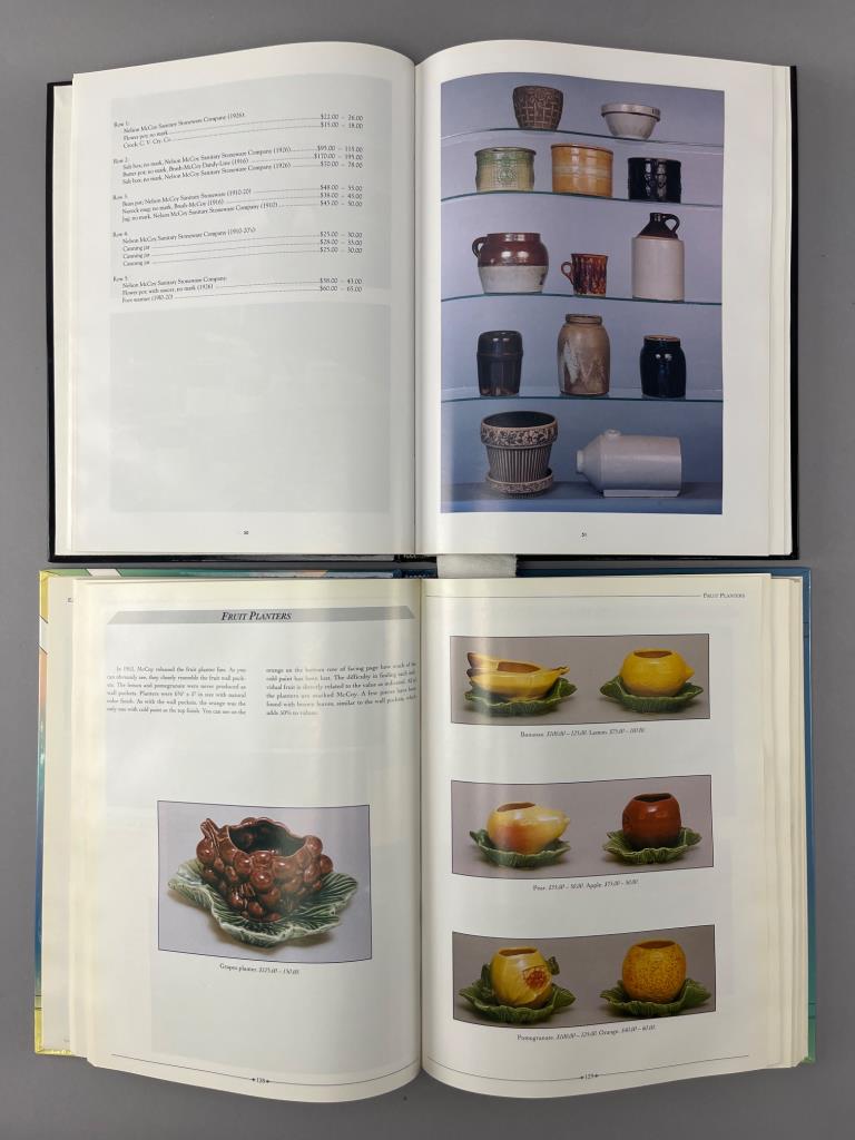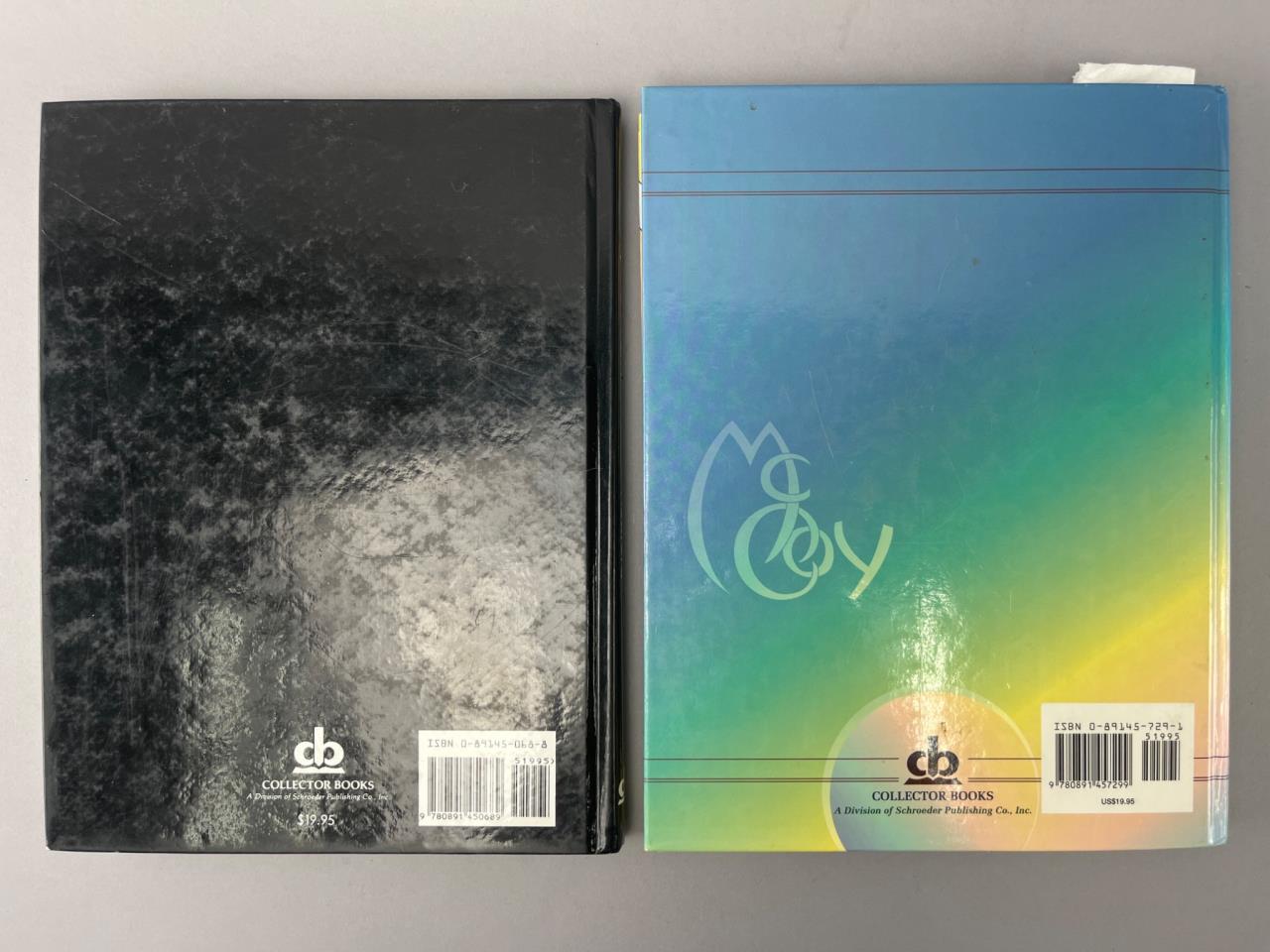 Two McCoy Pottery reference books focusing on collectors’ information and value guidance. Includes ‘The Collectors Encyclopedia’ and ‘Collectors Reference & Value Guide, Volume 1.’ Covers pottery patterns, values, and history.