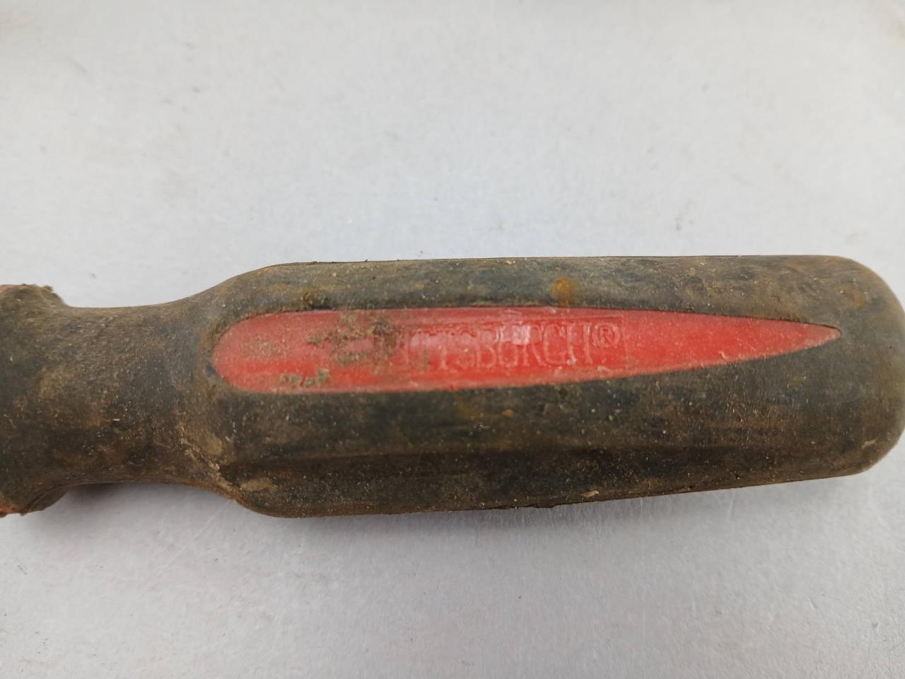Six Pittsburgh brand nut drivers with various colored plastic handles. Signs of rust and wear visible on shafts and handles.