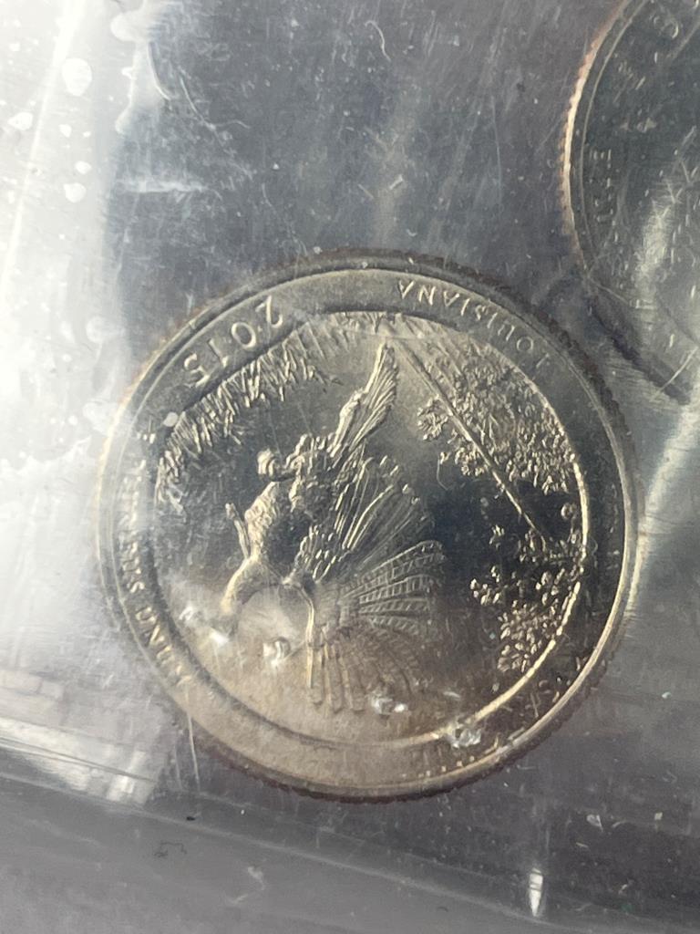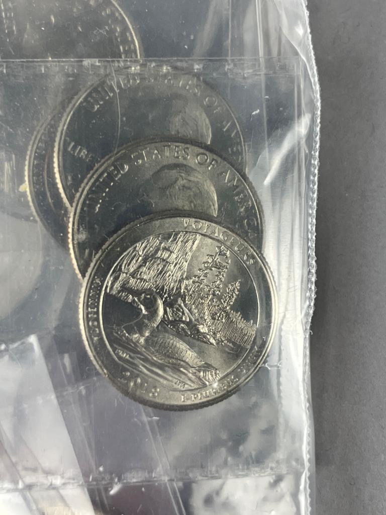 Bag containing approximately $57 in U.S. state quarters. Coins feature various state designs and are contained in plastic sleeves. Props or aids shown are not included.