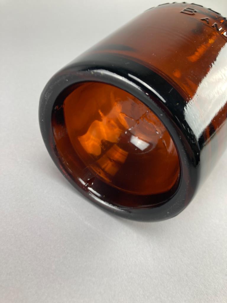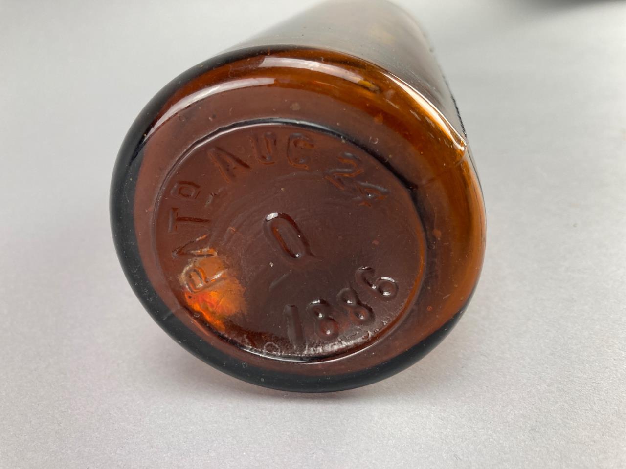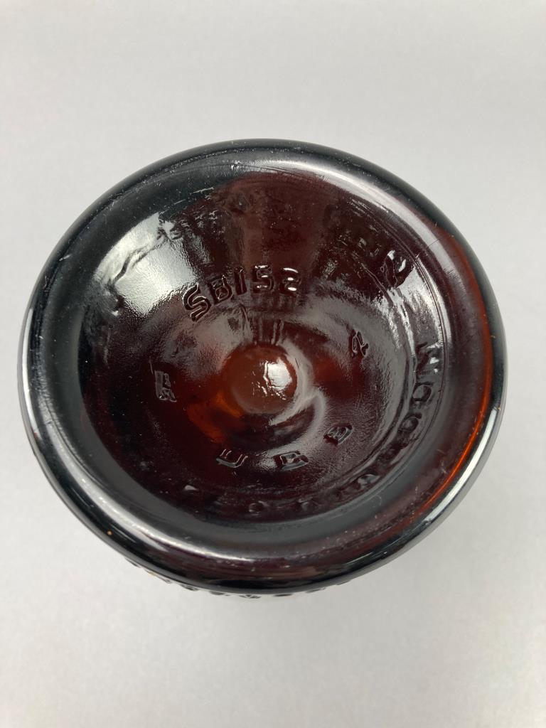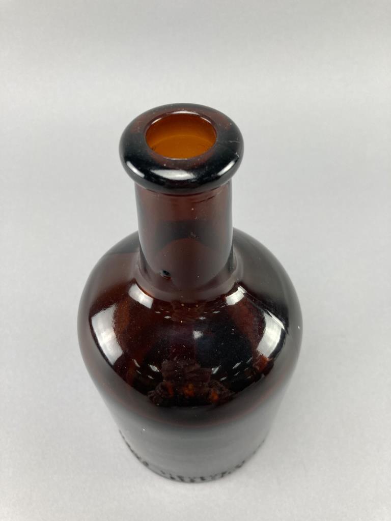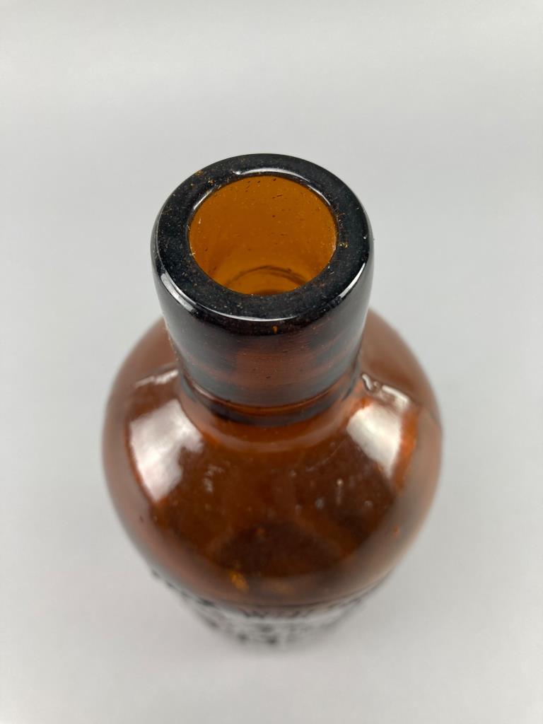 Three Embossed Amber Glass Bottles