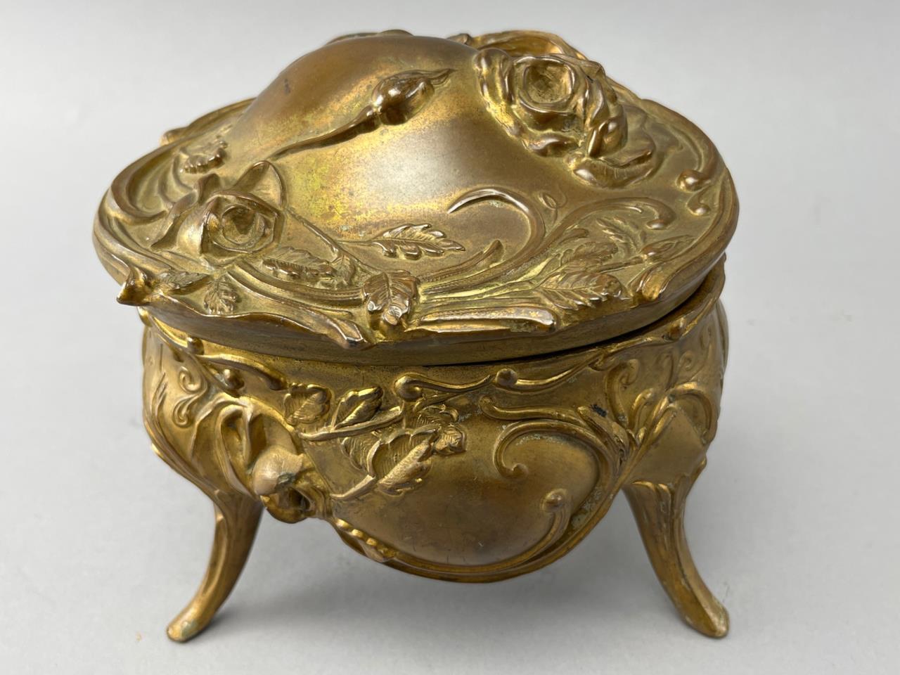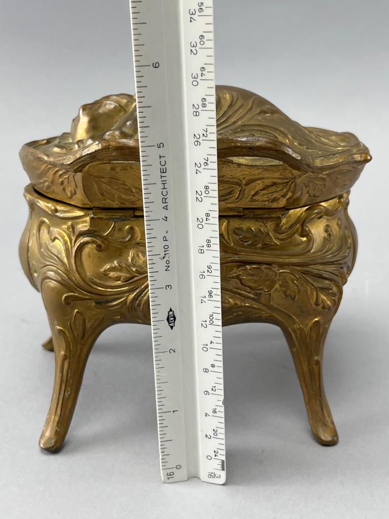 Gilt Metal Footed Jewelry Box with Floral Relief