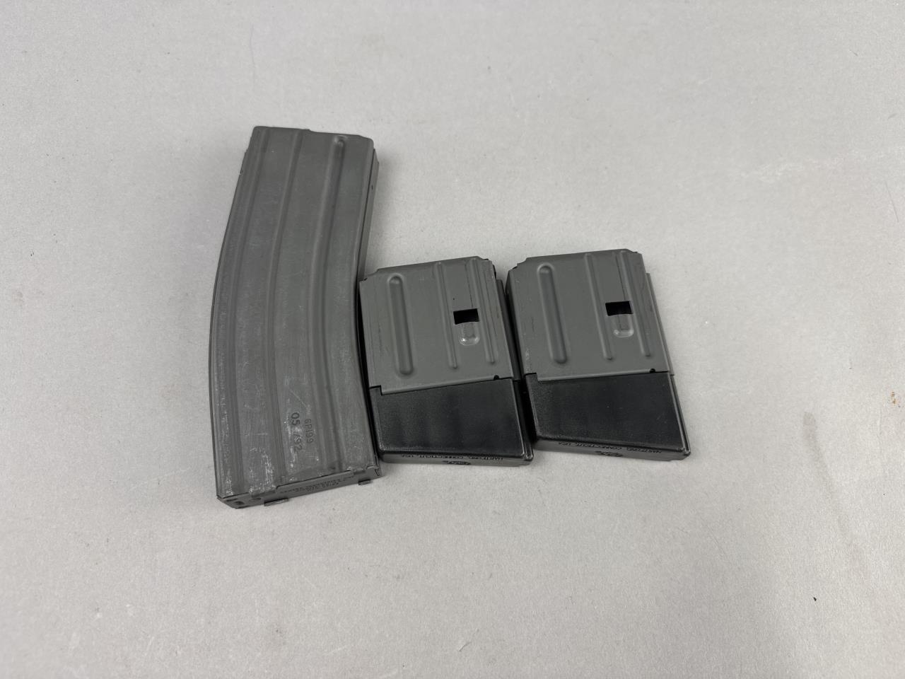 CONDITION: Overall, the rifle exhibits moderate handling marks throughout the finish, consistent with use and storage. The synthetic stock shows surface scuffs and wear but remains structurally sound. The ribbed foregrip is free of cracks or damage. There is visible wear on the muzzle brake and forward components from storage and handling. The bore is bright with defined rifling. The scope’s lenses appear intact, and the adjustments are functional. The action cycles smoothly, and no functional defects were noted in the visible components. Accessories and manuals show light handling wear and remain complete.
