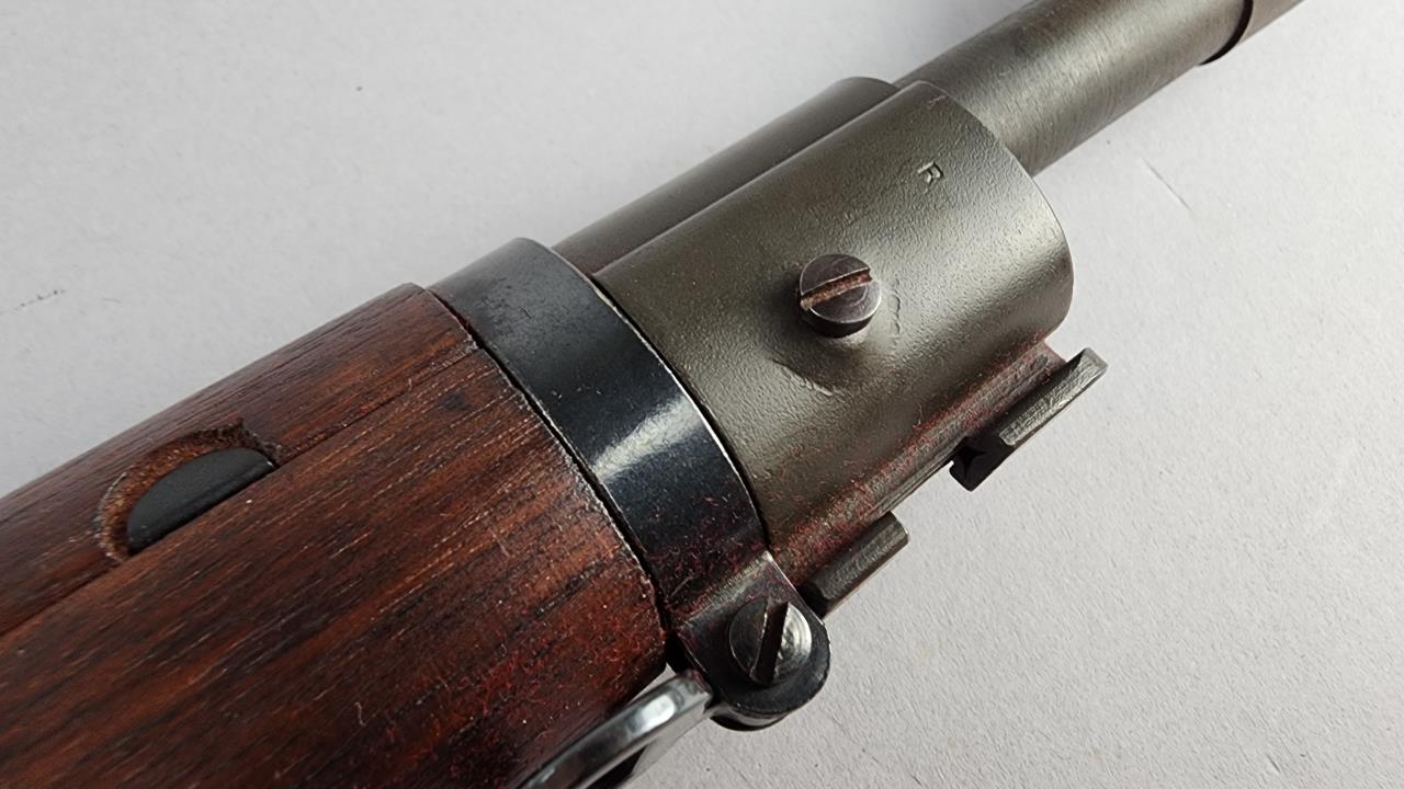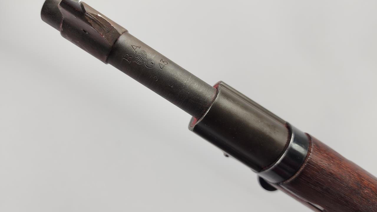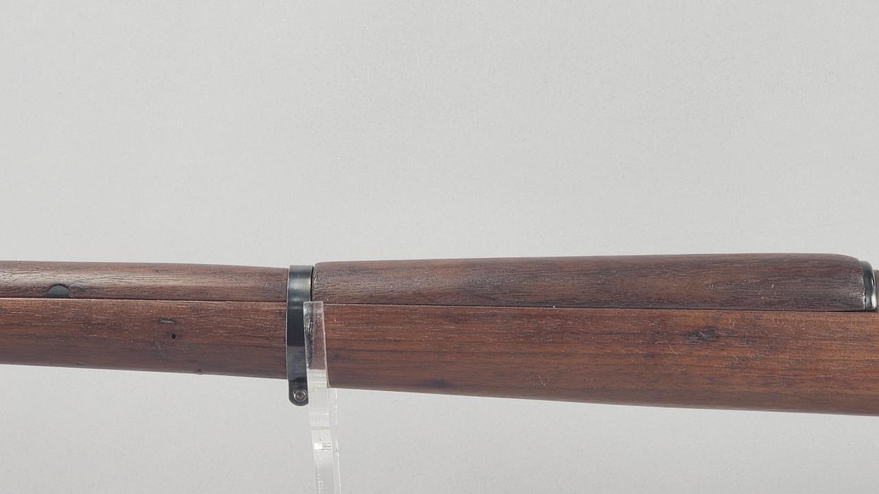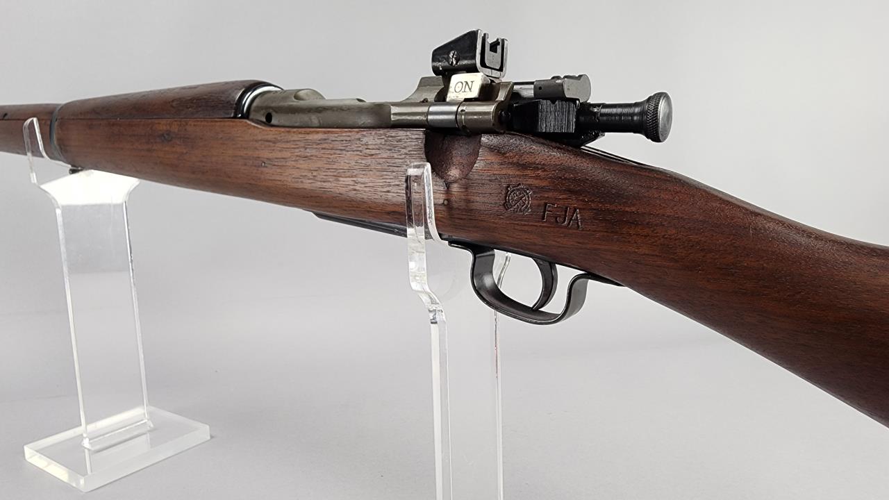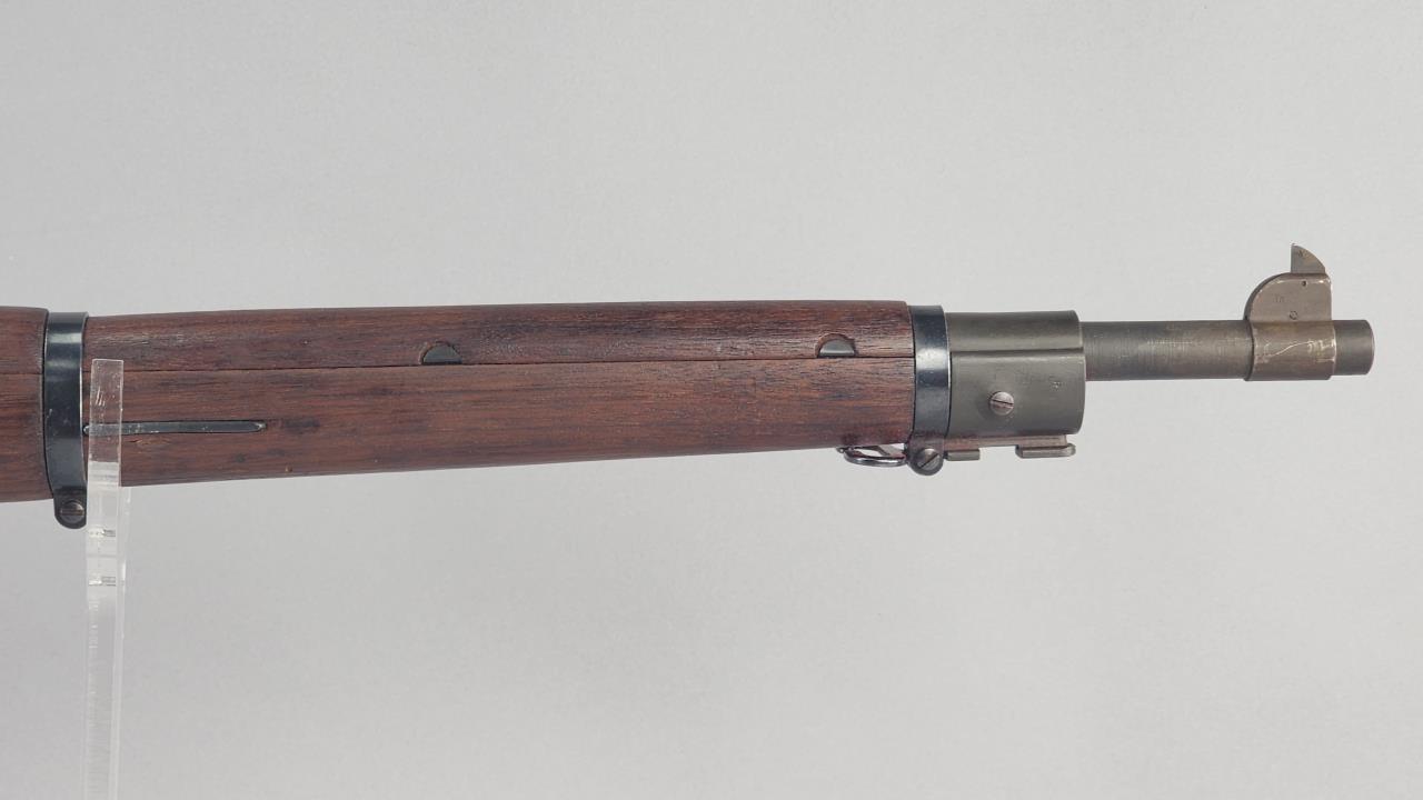 CONDITION: The rifle exhibits moderate handling wear but appears overall intact. The parkerized finish shows minor thinning and wear on high-contact areas. The walnut stock has visible handling marks and scratches along with clear cartouche marks but remains solid and free of cracks. The bore appears bright with strong rifling visible. The bolt cycles smoothly, and the safety engages properly. The barrel bands, sight components, and metal fittings are securely mounted with no signs of significant damage.