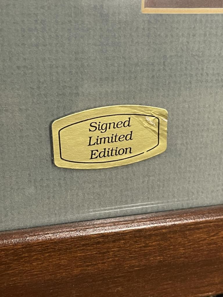 CONDITION: The ‘Winter Whitetails’ print is in very good condition, with the mat, glass, and frame showing minor handling wear but no significant damage noted. The signature and numbering are clear and legible. The photographic print of the hunting dog is similarly in very good condition, with the wooden frame showing minimal wear commensurate with age and prior display. Both works are structurally sound and suitable for immediate display.