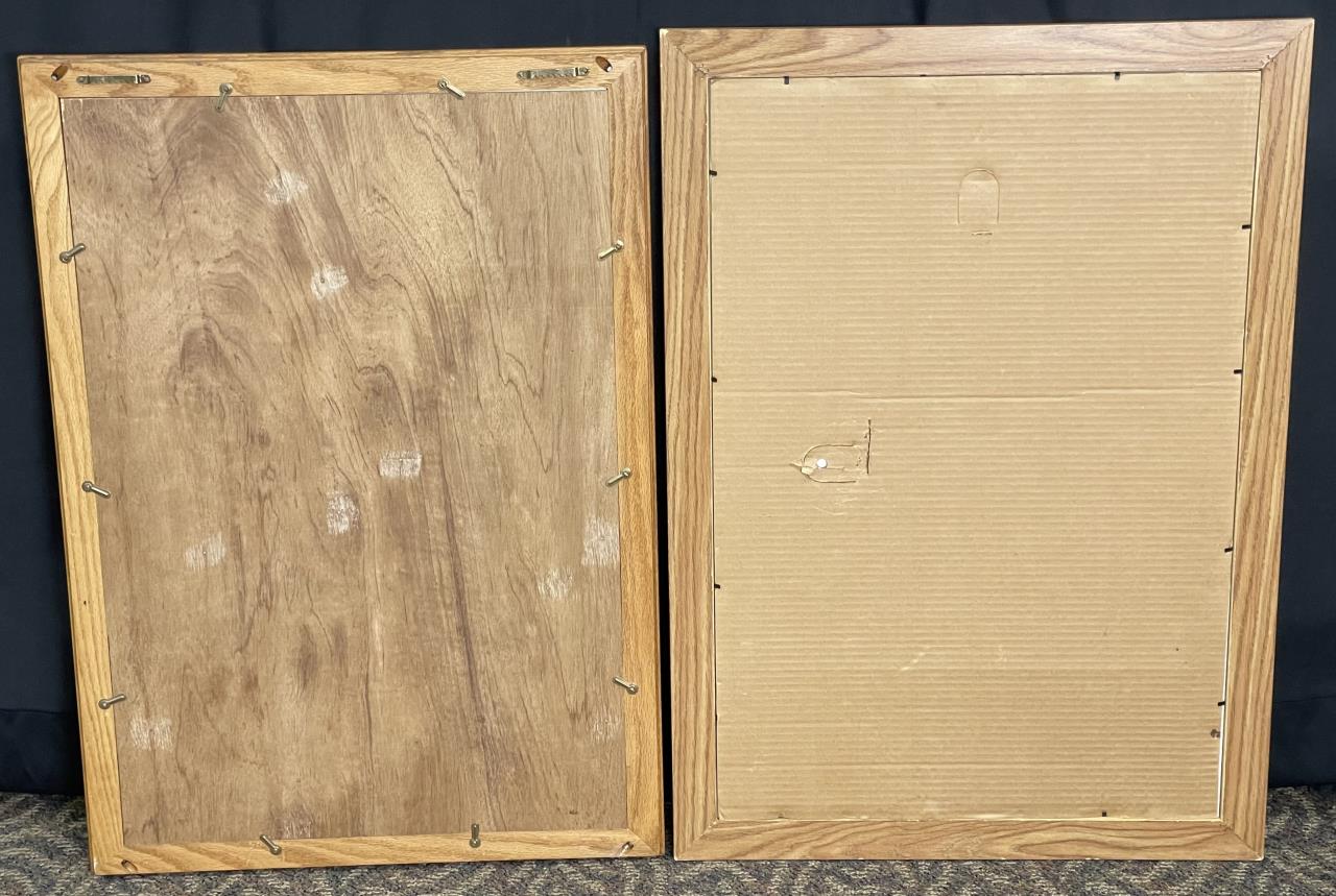 CONDITION: Both framed posters are in good overall condition with minor signs of age and handling, including slight scuffing and wear on the frames. There are some small surface imperfections visible on the back boards of the frames, as seen in the images. The artwork itself appears well-preserved with colors still vibrant and clear.