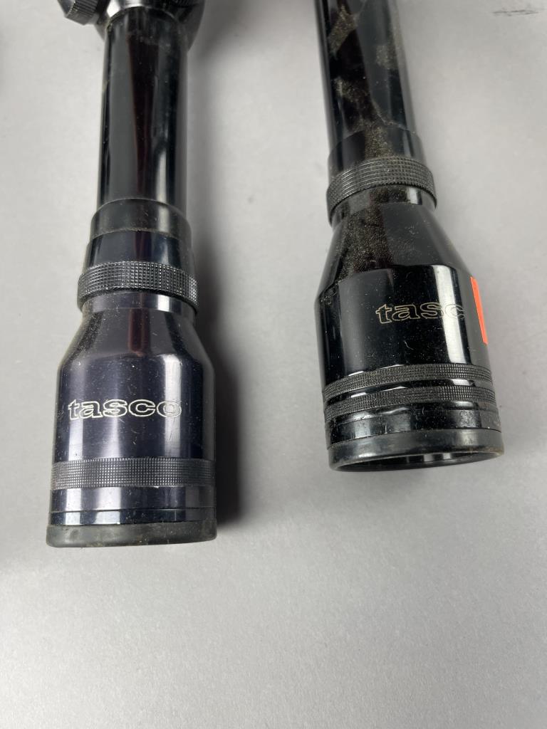 CONDITION: Overall, the scopes exhibit wear consistent with use, including surface dust and handling marks on the bodies. The Cabela’s scope shows some scratching and puncturing in its yellow speckled finish, which is cosmetic. Clear lenses appear intact across all scopes; however, detailed lens condition and optical clarity cannot be confirmed based on the images provided. Turrets and adjustment dials appear functional, with no visible signs of damage. No mounting rings or additional accessories are included.