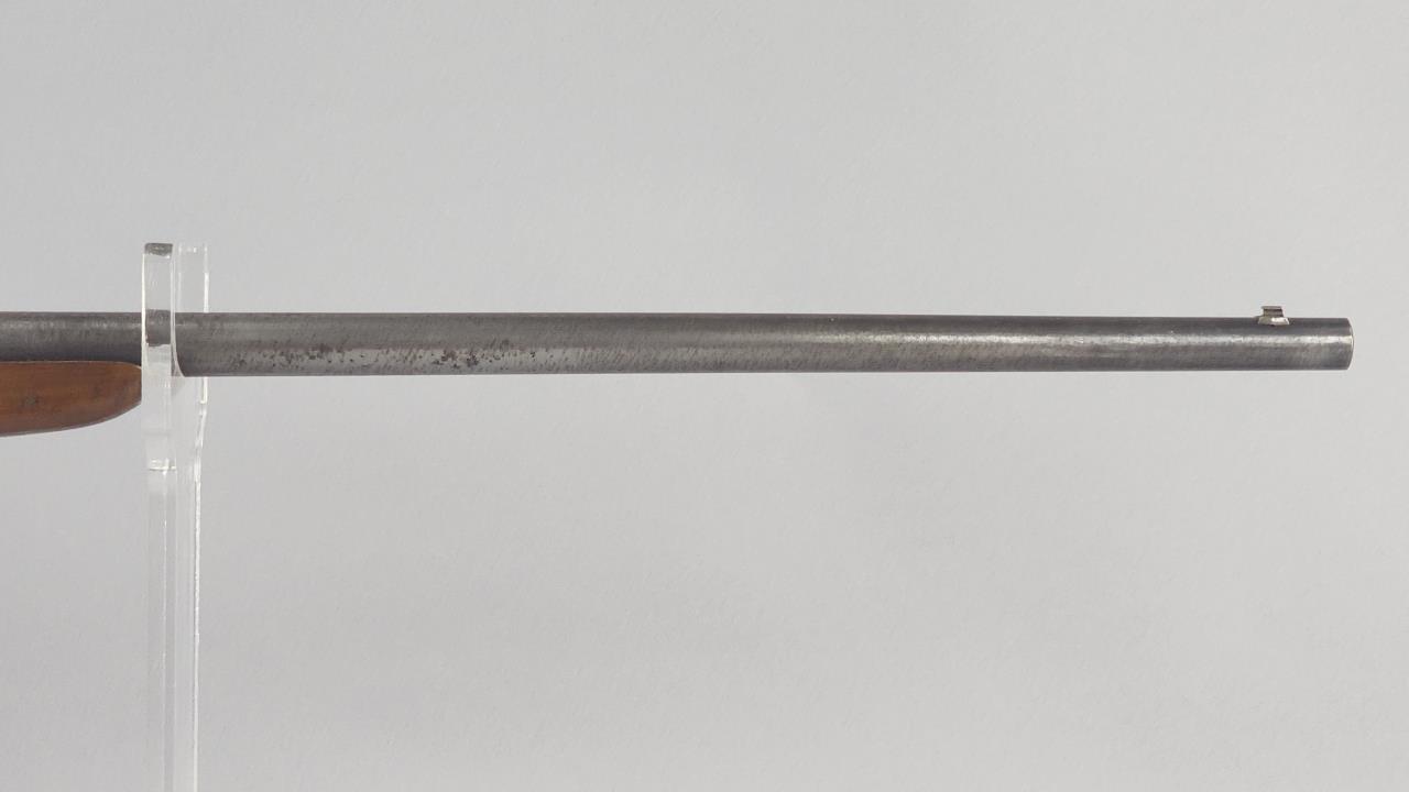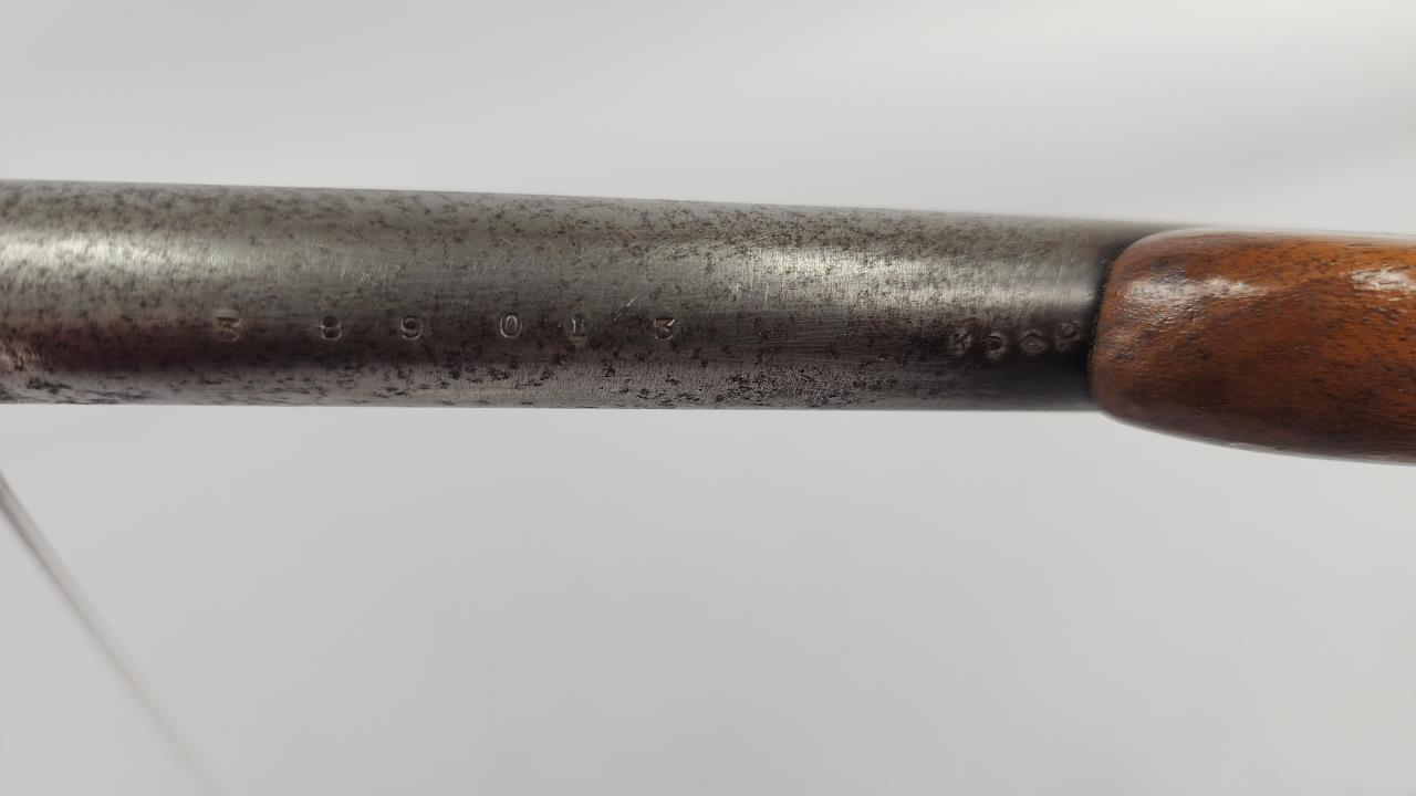 CONDITION: The rifle shows moderate finish wear on the barrel, with areas of patina and freckling consistent with age and use. The case-hardened receiver retains a portion of its original coloring but has areas of thinning. The walnut stock and forearm display scattered handling marks, light surface dings, and minor scratches, but no significant cracks or structural concerns were observed. The bore appears to have some residue and may benefit from cleaning. The action cycles smoothly, and the sights are intact with no apparent deformation.