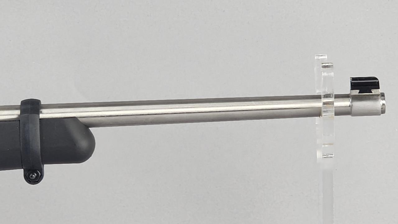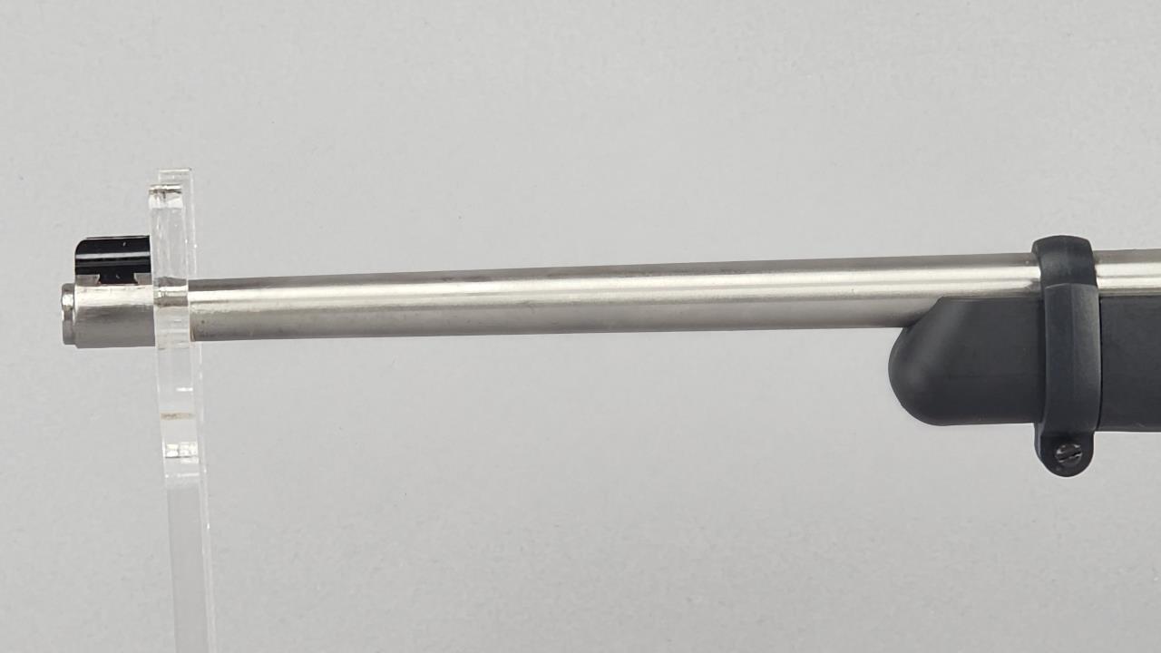 CONDITION: The rifle shows minor handling wear on the synthetic stock consistent with light use, including faint scuff marks visible on the exterior. The stainless steel surfaces are clean and present well. The barrel bore is shiny with sharp rifling, and the action appears to function correctly as inspected. Both magazines show light wear but remain functional. The included hard case is in very good condition, with all closures and hinges functioning properly. Overall, the firearm is in good used condition.