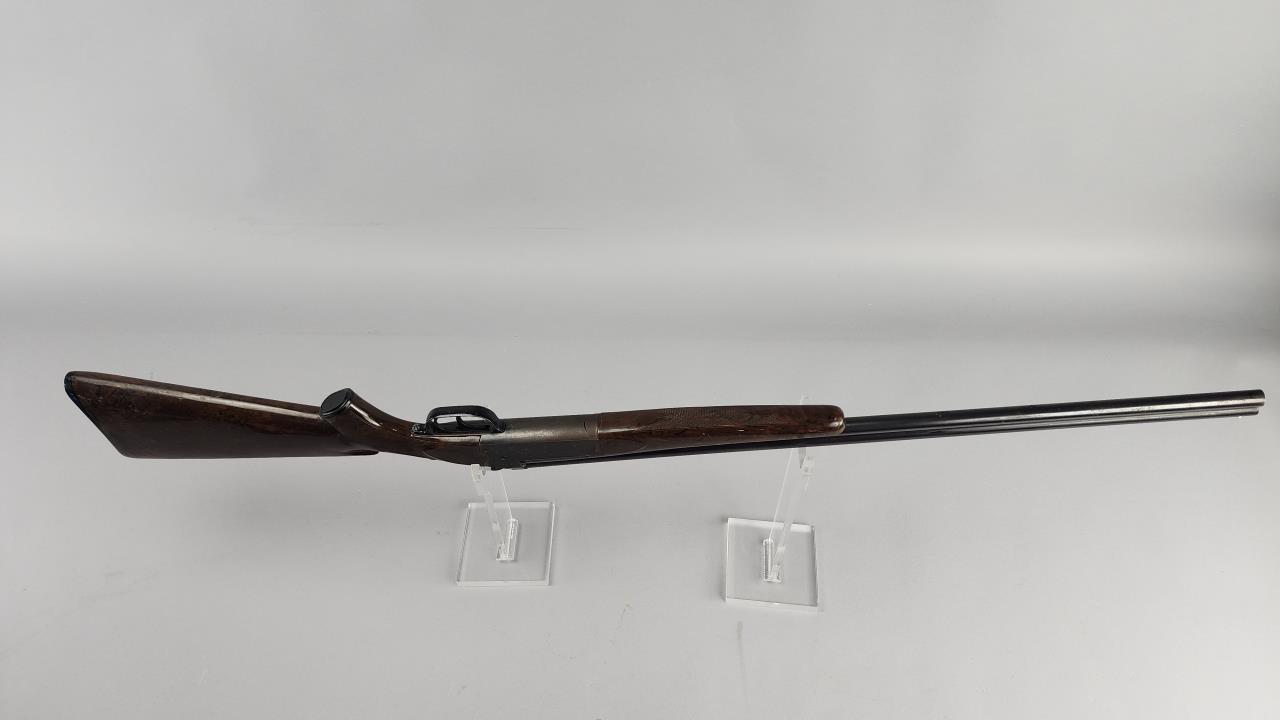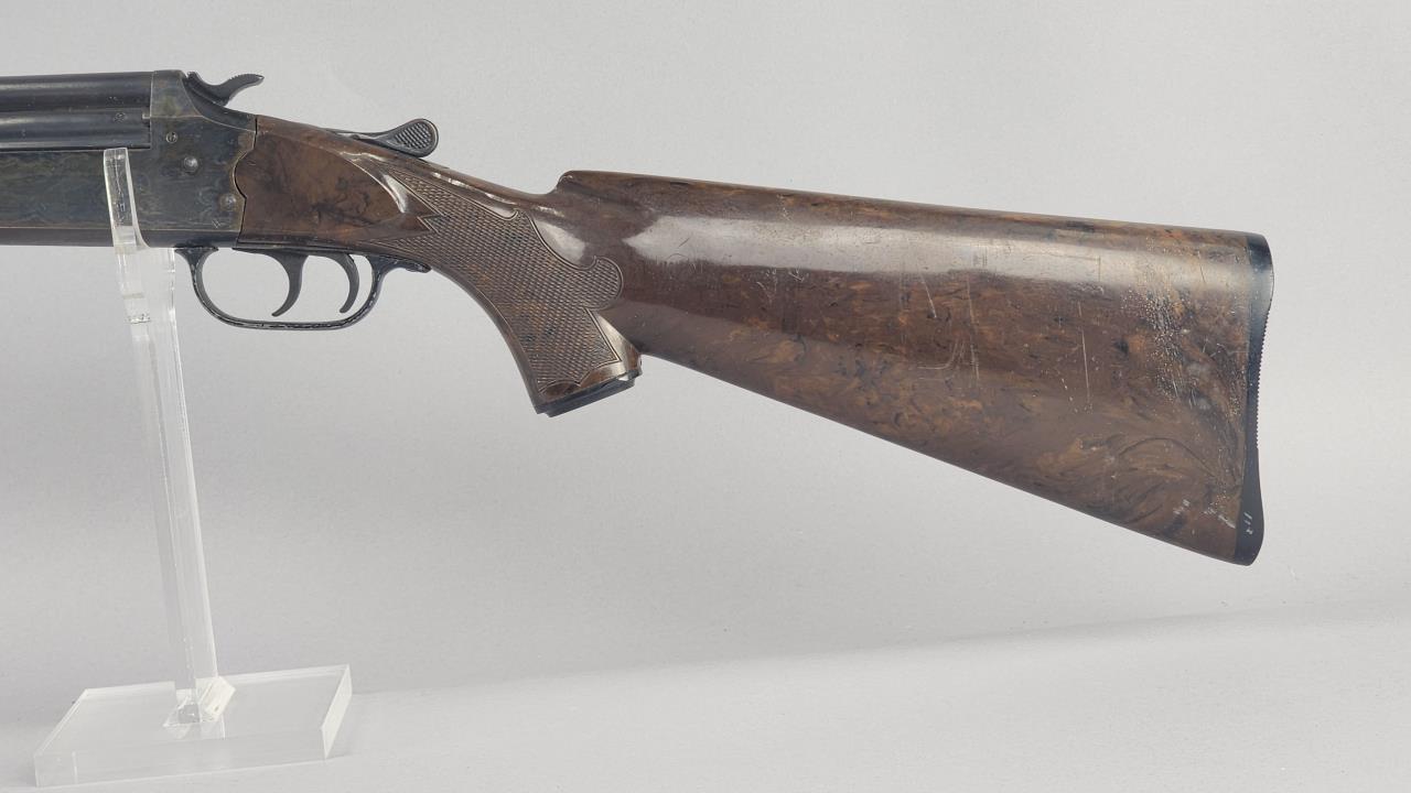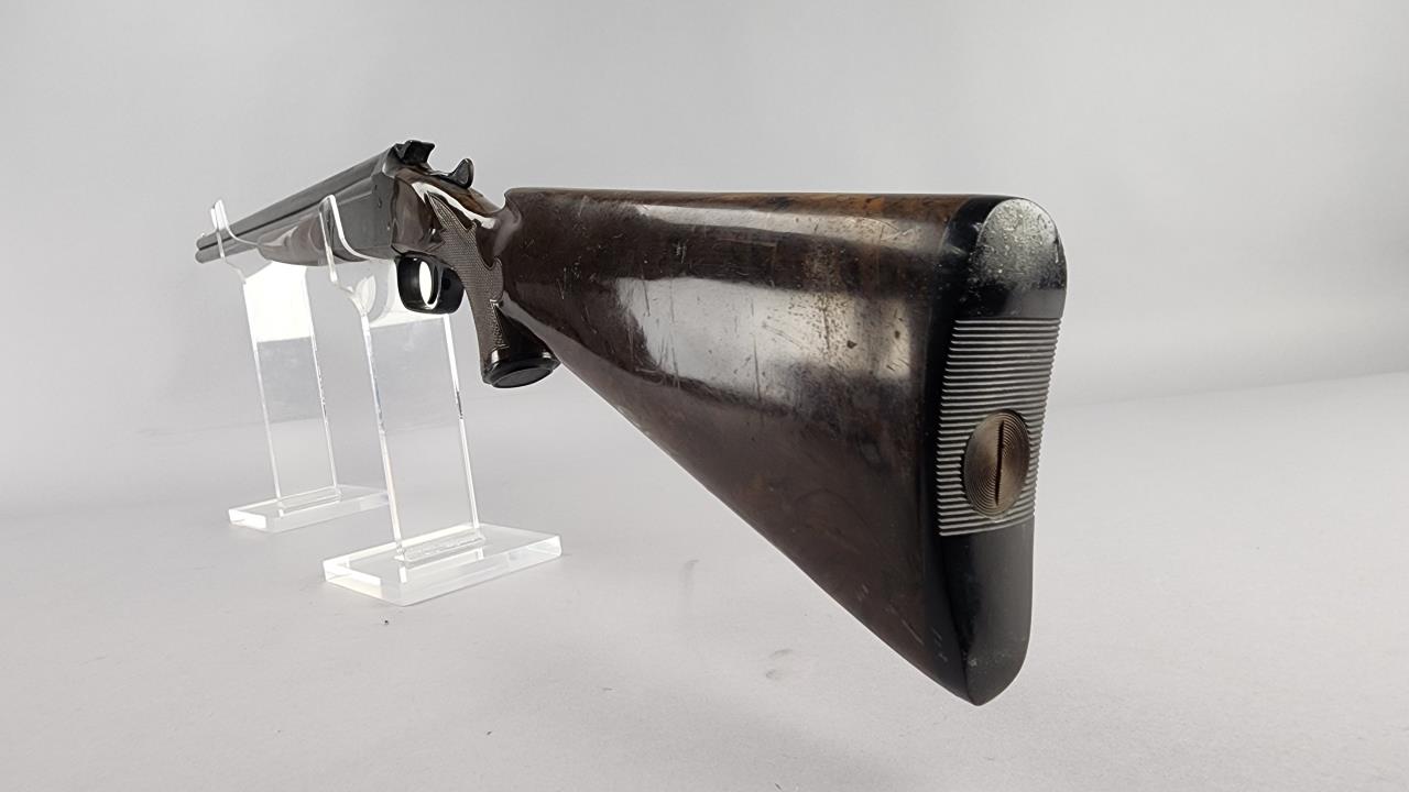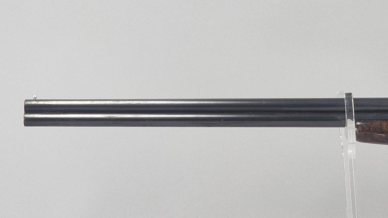CONDITION: The synthetic stock and forearm exhibit notable scratches, scuffs, and handling marks throughout, particularly on the buttstock. Color case-hardening finish on the receiver shows signs of wear, with fading on edges. Bluing on the barrel is worn in high-contact areas but free of major pitting. Mechanically, the action engages and locks appropriately, and the bores are free of visible obstructions but show light fouling. Recoil pad displays moderate wear, with slight abrasions evident on the surface.