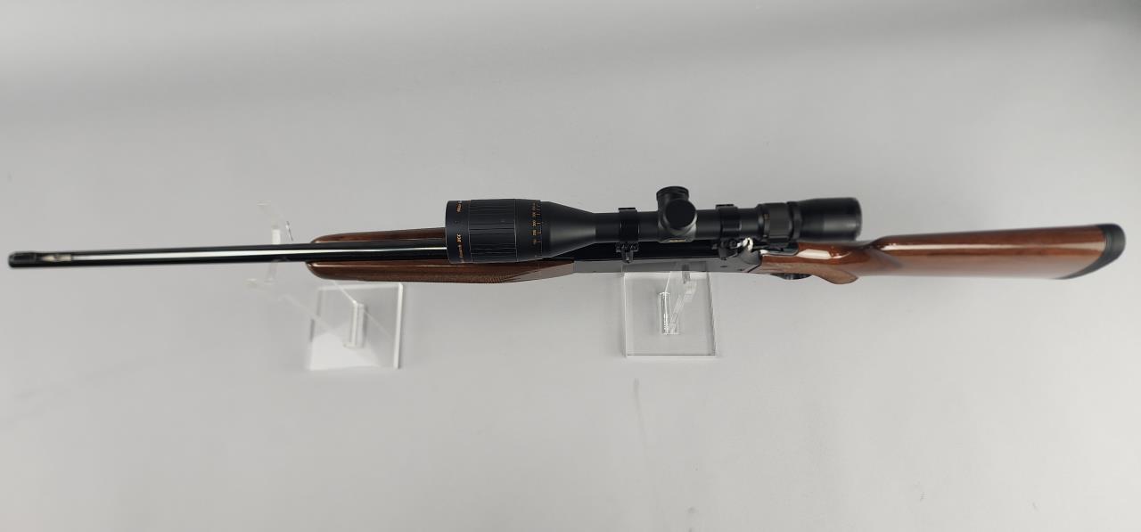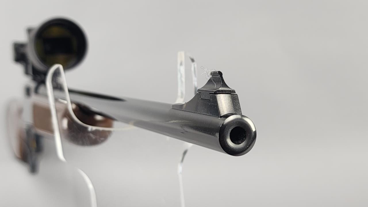 CONDITION: This rifle is in excellent visual condition, showing only light handling wear on the stock and minor surface marks on the scope. The bore appears bright and well-defined, with no visible defects. The action cycles smoothly, and the trigger retains its clean gold plating. The mounted Nikon Monarch UCC scope is clear and adjustable, with some external wear near the eyepiece. The checkering on the stock and forearm is sharp and unmarred. The recoil pad is in good condition with no tears or excessive wear noted.