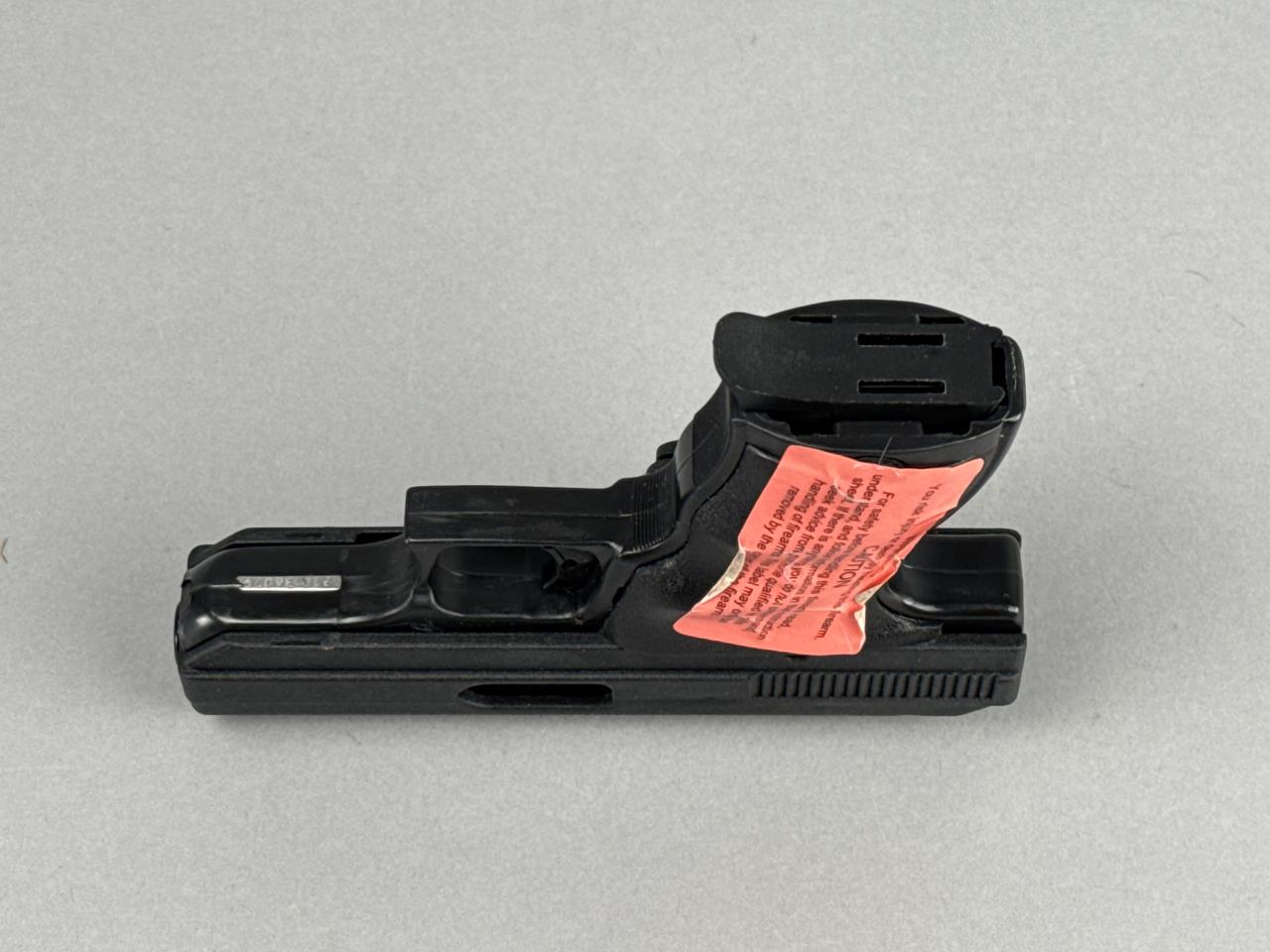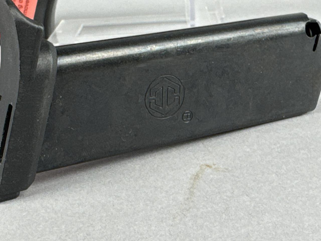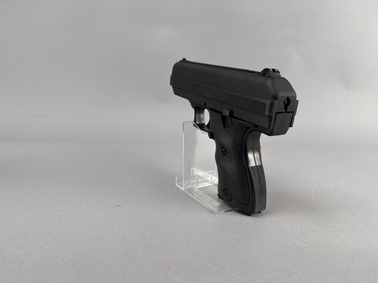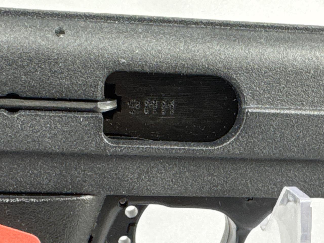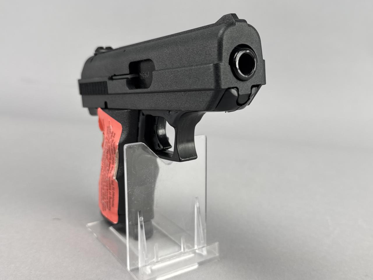 CONDITION: The pistol appears to show minimal handling wear, with all markings clearly visible and crisp. The polymer frame and synthetic grips are free from major scuffs or damage. The bore is clean with visible rifling, and the action cycles smoothly. The magazine shows light handling marks. Original box shows some wear but remains structurally intact.